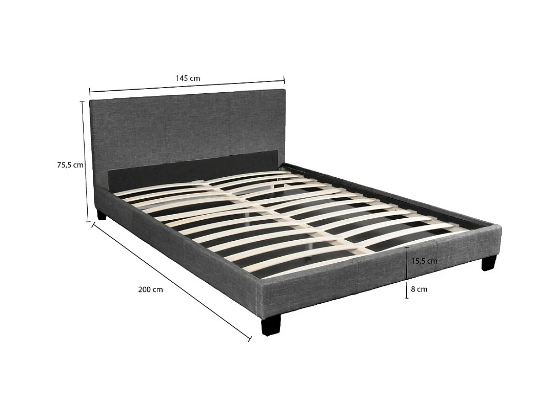 Lit 2 places 160x200cm Tissu Gris foncé avec sommier DUSIN