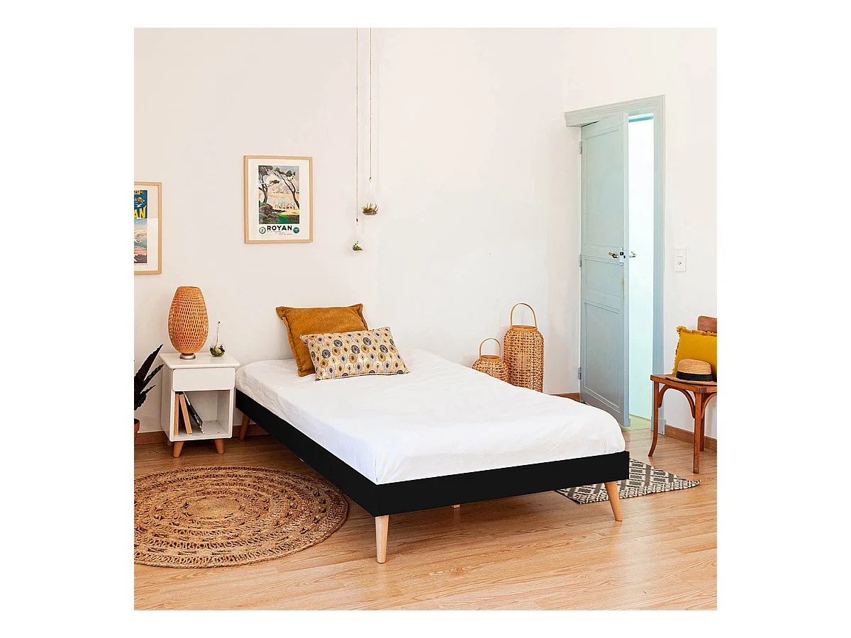 Lit 2 places avec pieds 120x190 cm bois massif noir DARLA