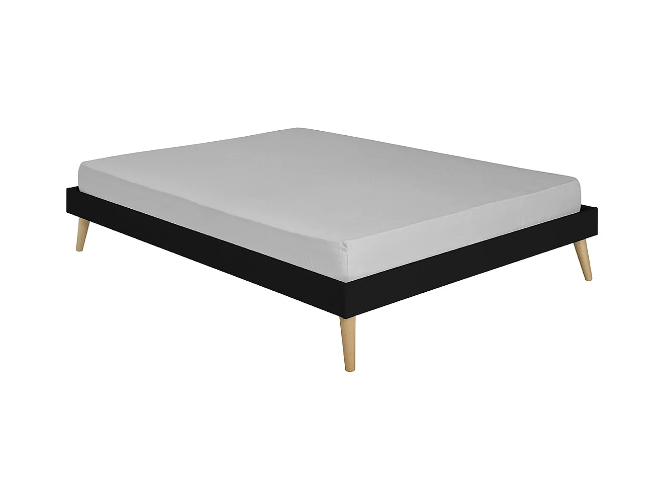 Lit 2 places avec pieds 140x190 cm bois massif noir DARLA