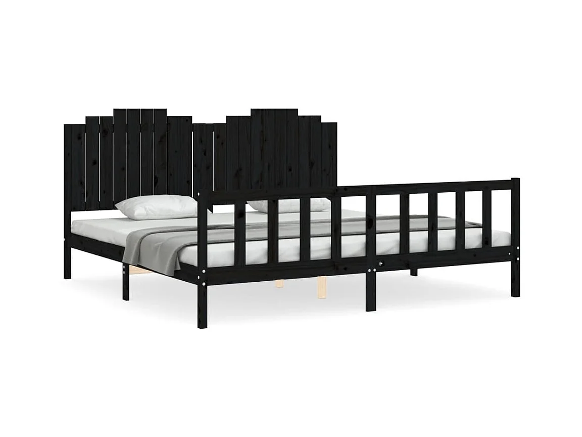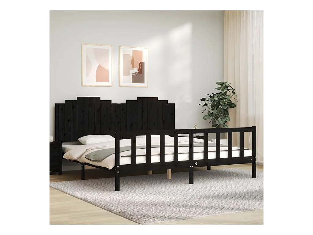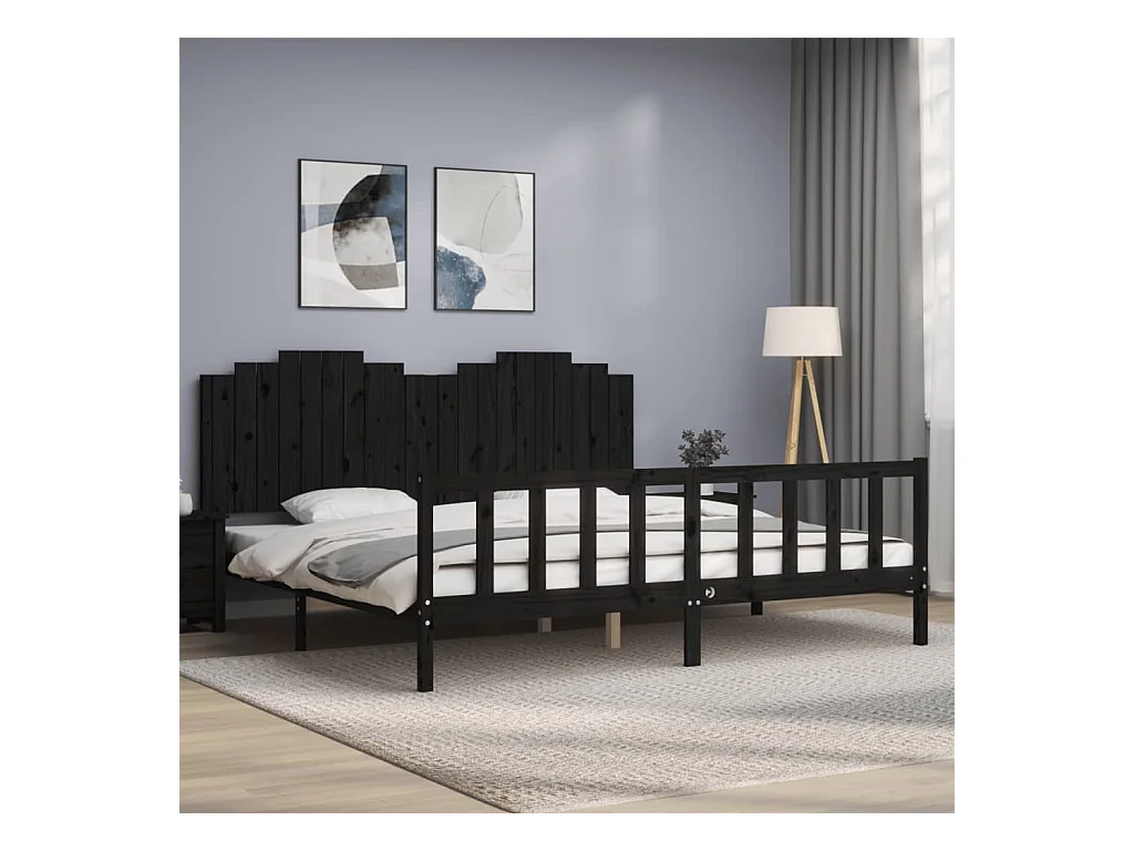 Lit-200x200 cm avec tête de lit noir bois massif EGGB11106