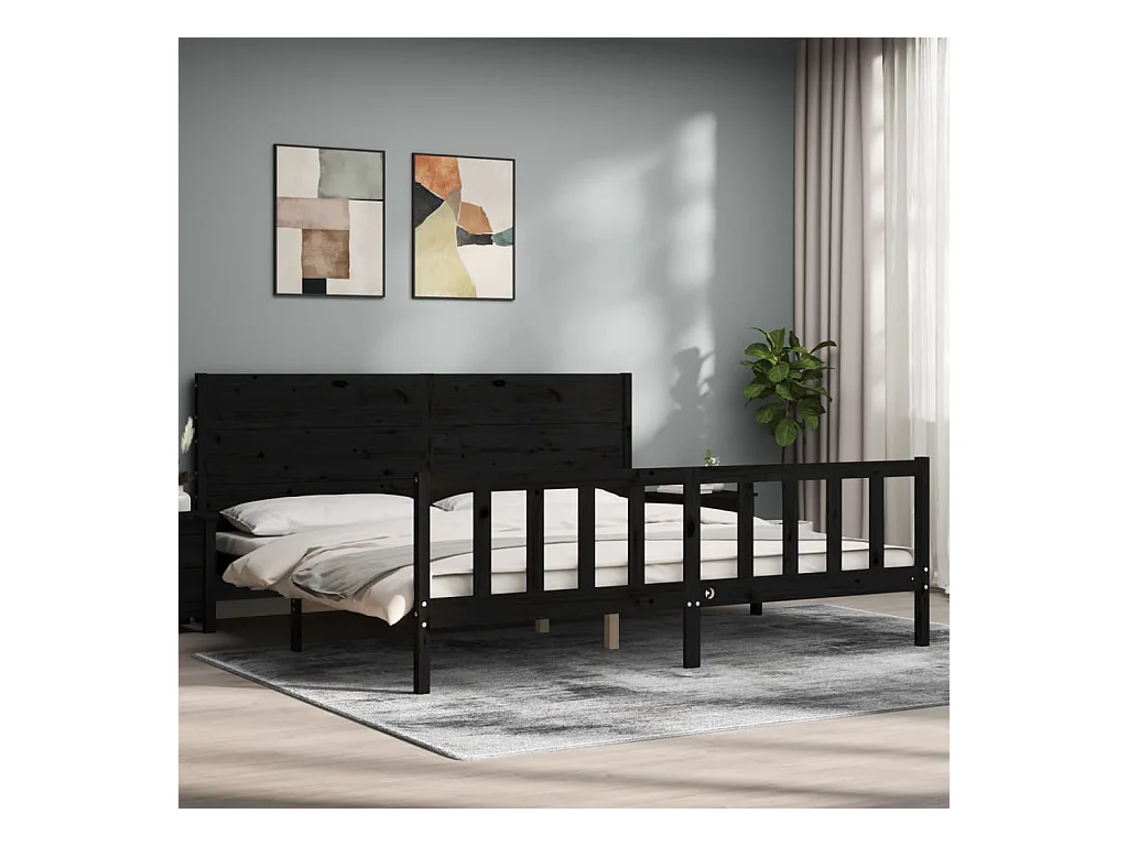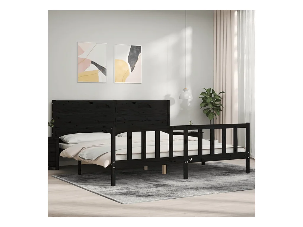 Lit-200x200 cm avec tête de lit noir bois massif EGGB37542