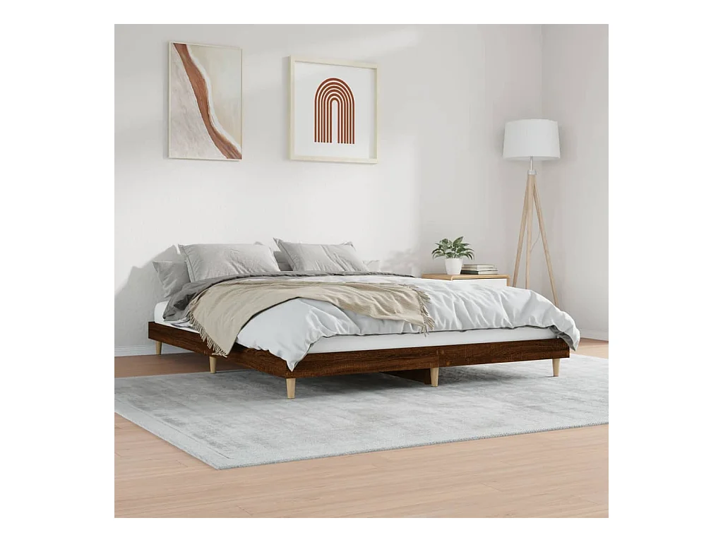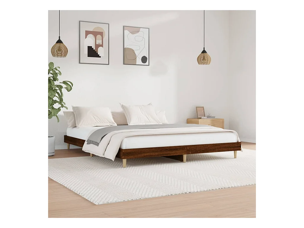 Lit-200x200 cm chêne marron bois d'ingénierie EGGB99491