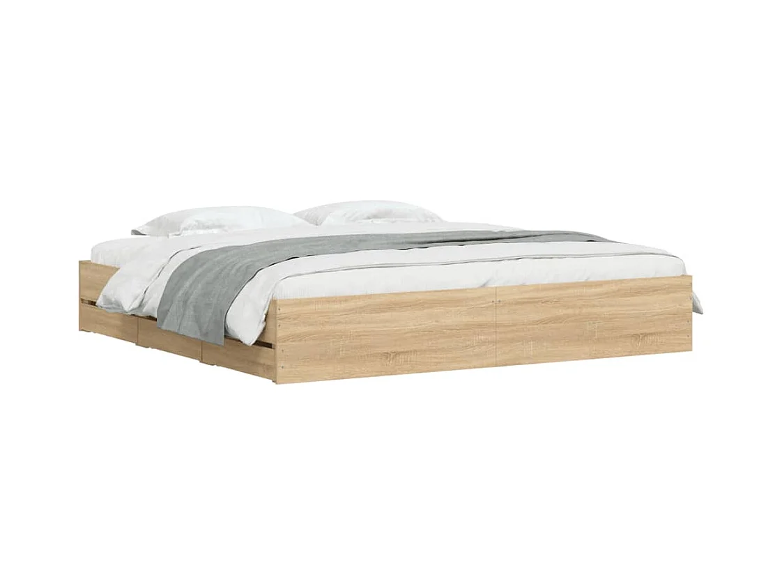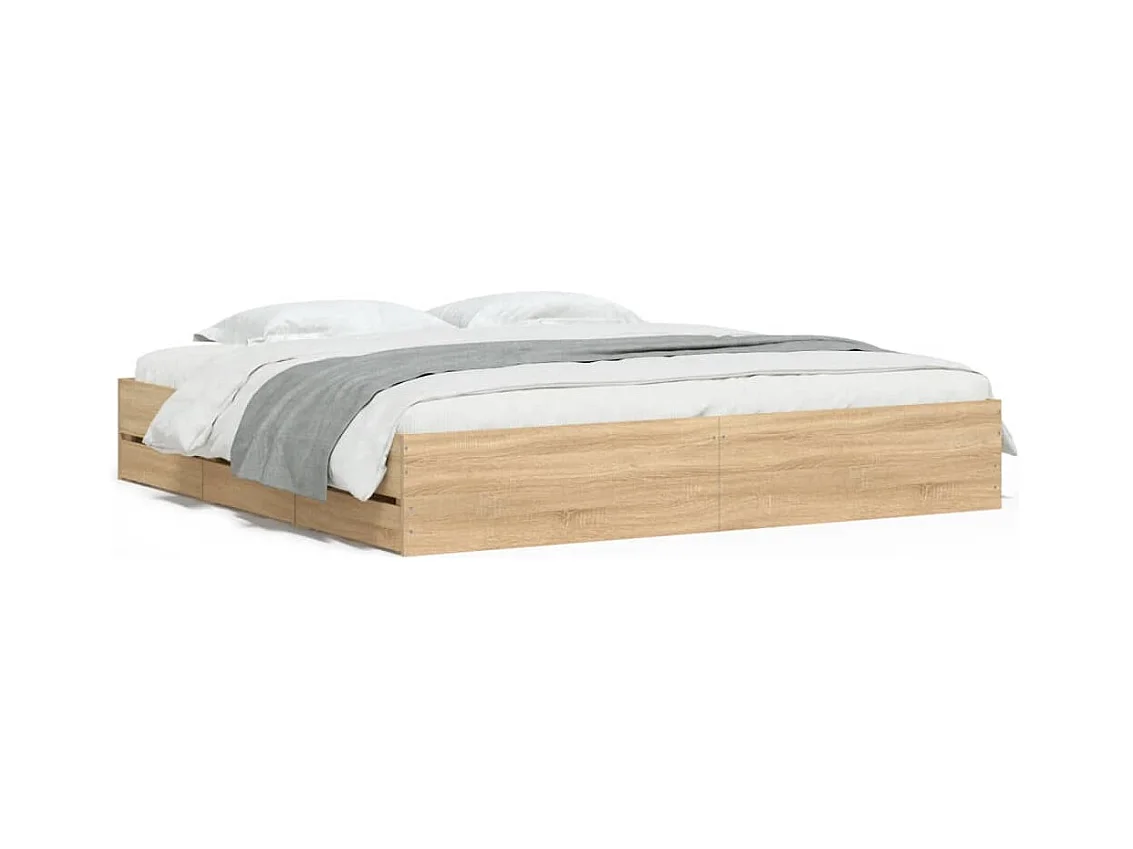Lit-200x200 cm + tiroirs chêne sonoma HOQW27997