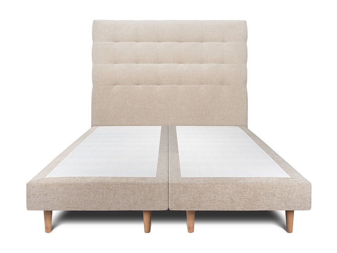 Lit 200x200cm avec tête de lit capitonnée tissu et double sommier tapissier beige brun - Hauteur totale : 29cm