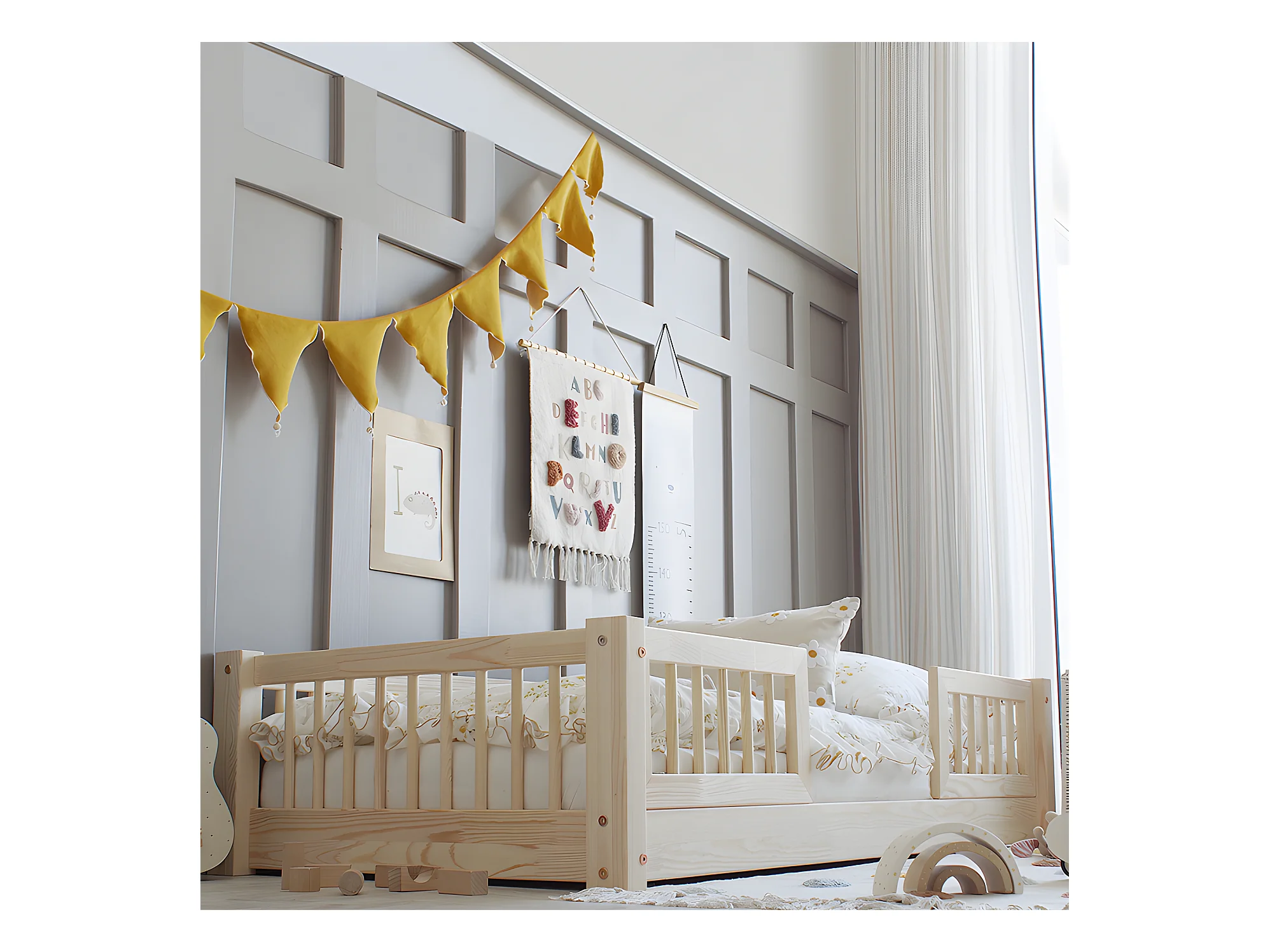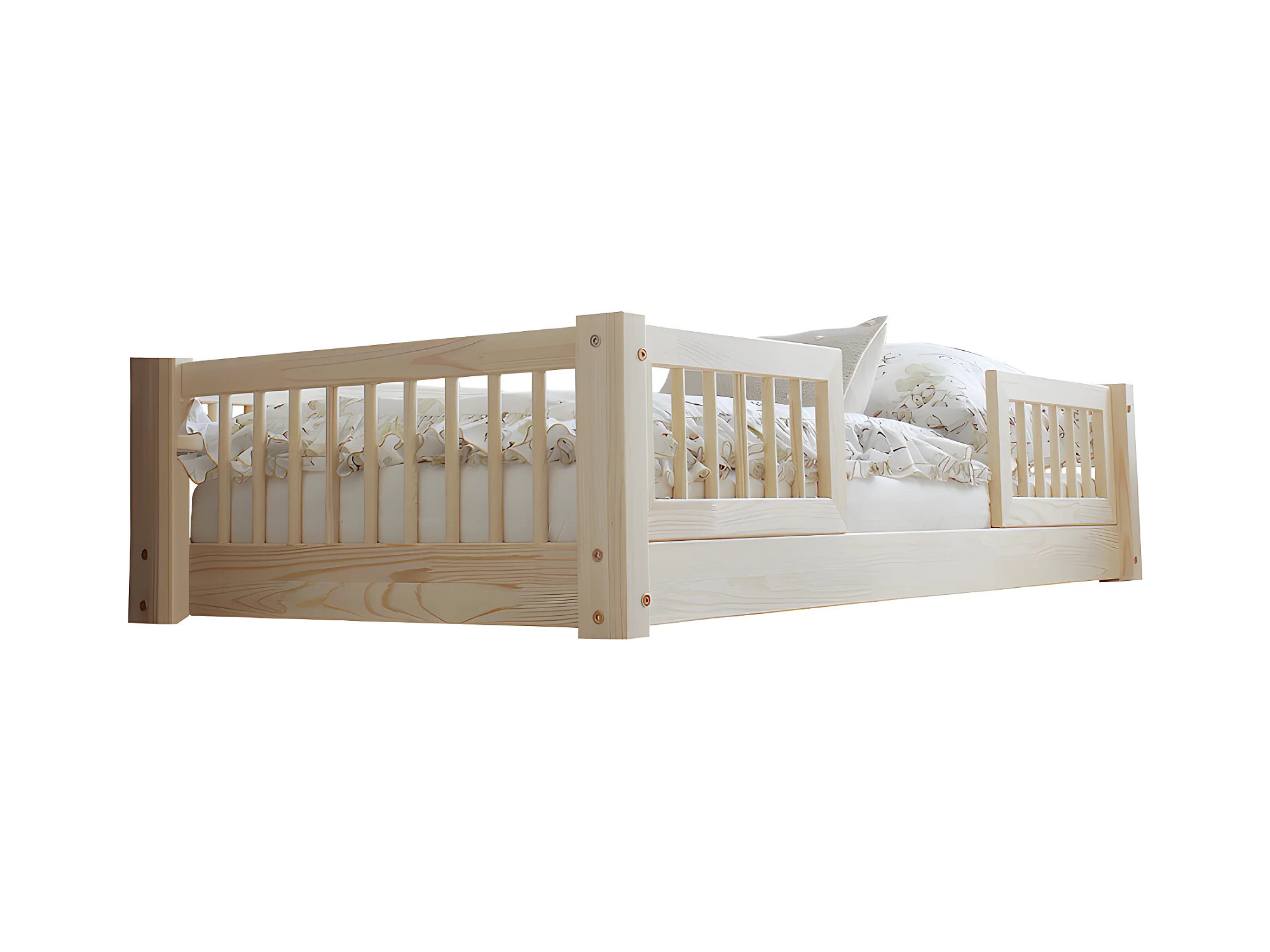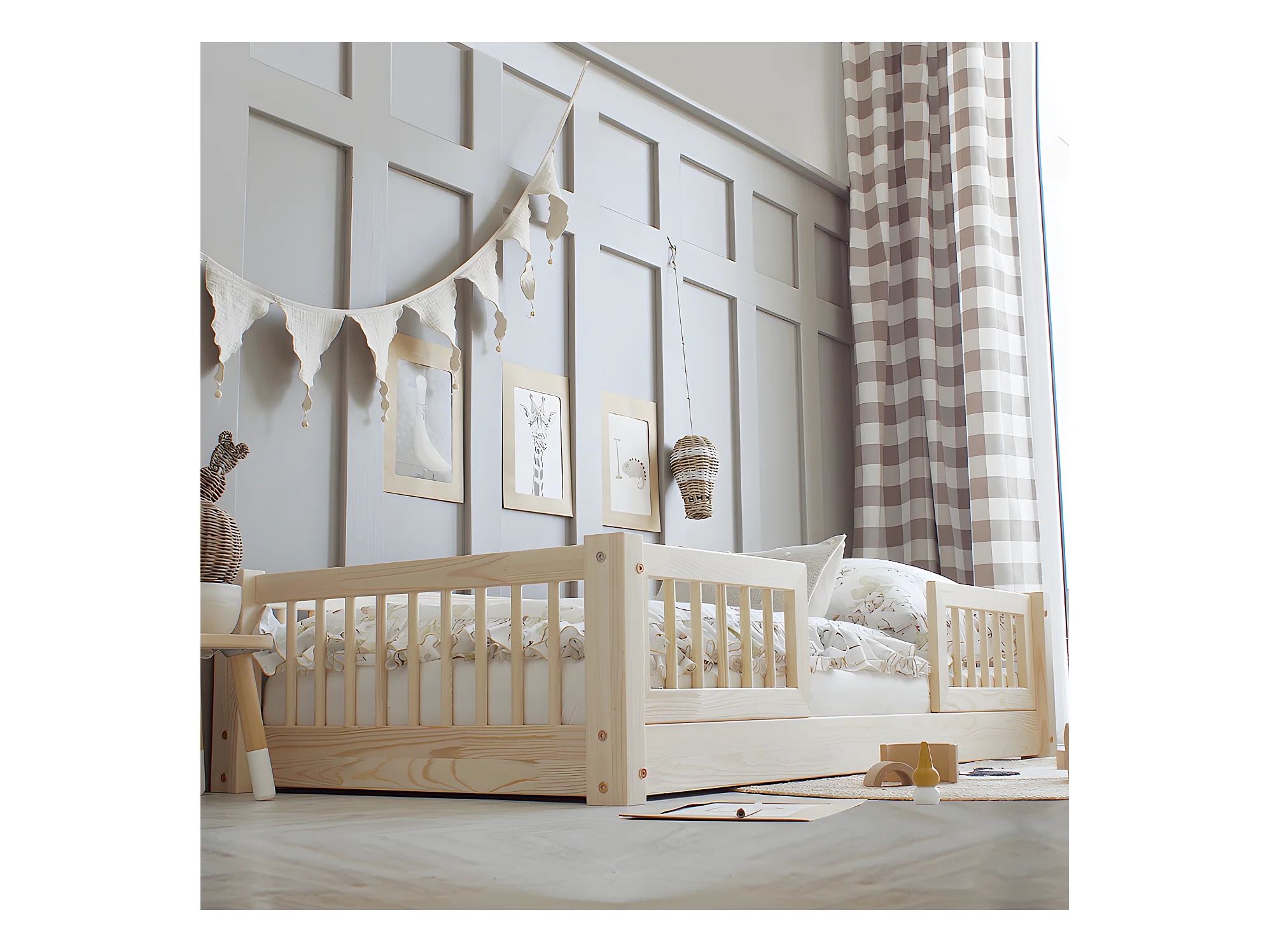 Lit 70x140 barrières et sommier inclus pieds 1 cm Adèle Bois