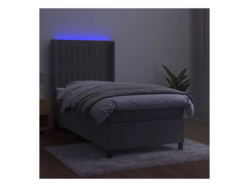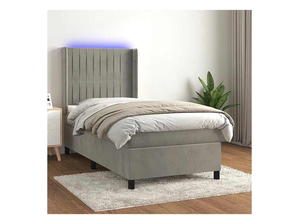 Ensemble complet boxspring - 80x200 cm + sommier à lattes de lit+ matelas LED Gris clair Velours SRGW14340