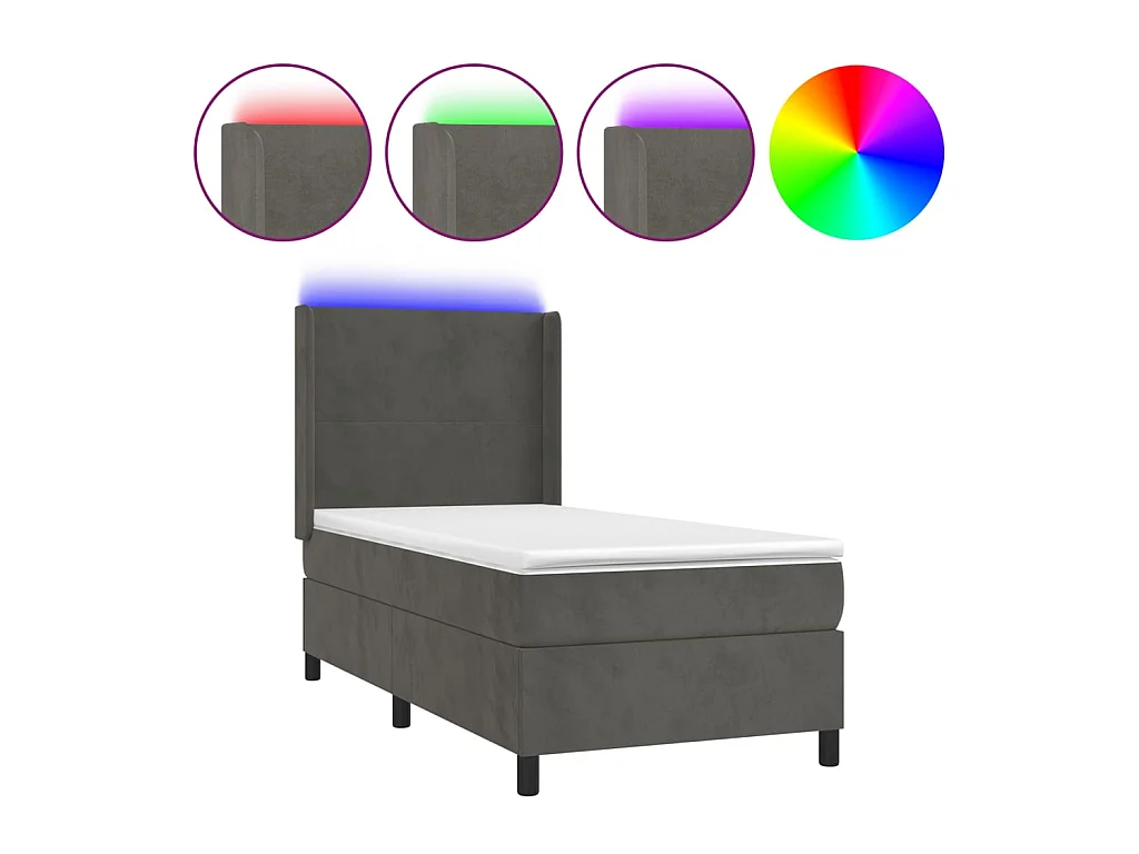 Ensemble complet boxspring - 80x200 cm + sommier à lattes de lit+ matelas LED Gris foncé Velours SRGW83970