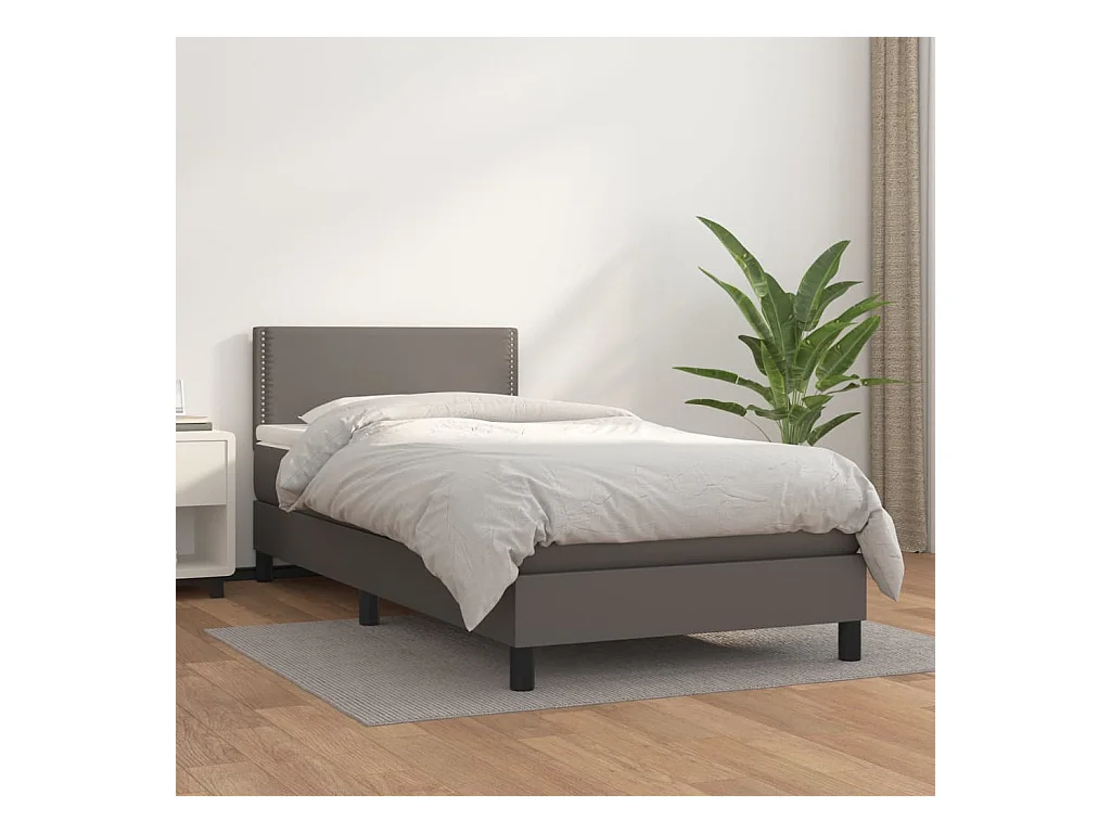 Ensemble complet boxspring - 80x200 cm + Sommier à lattes de lit + matelas Gris Similicuir FR21427