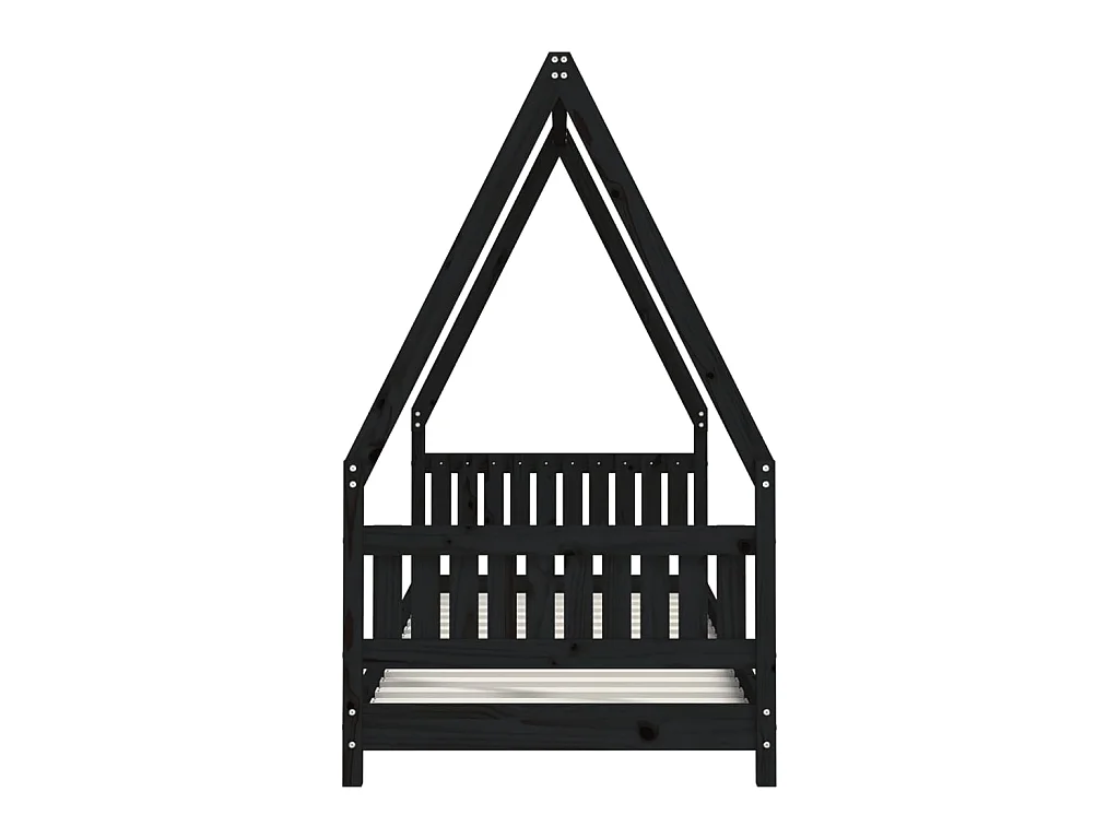Lit-80x200 cm pour enfants noir bois de pin massif EGGB65944