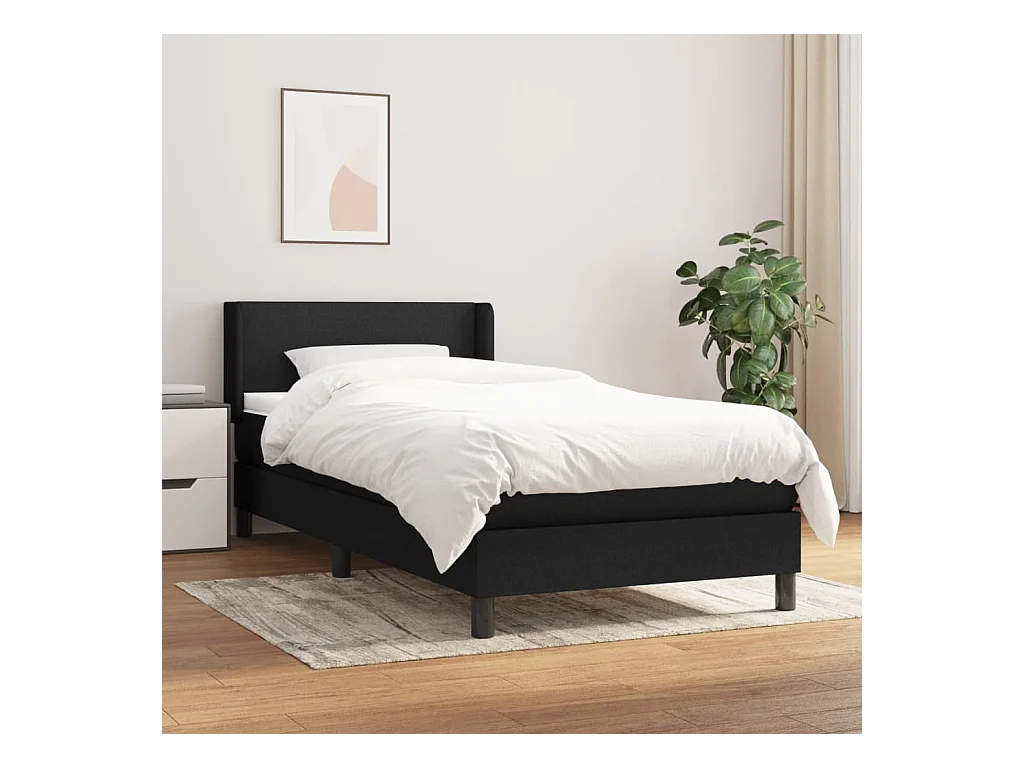 Ensemble complet boxspring - 90x190 cm + sommier tapissier + matelas Noir Tissu SRGW97966