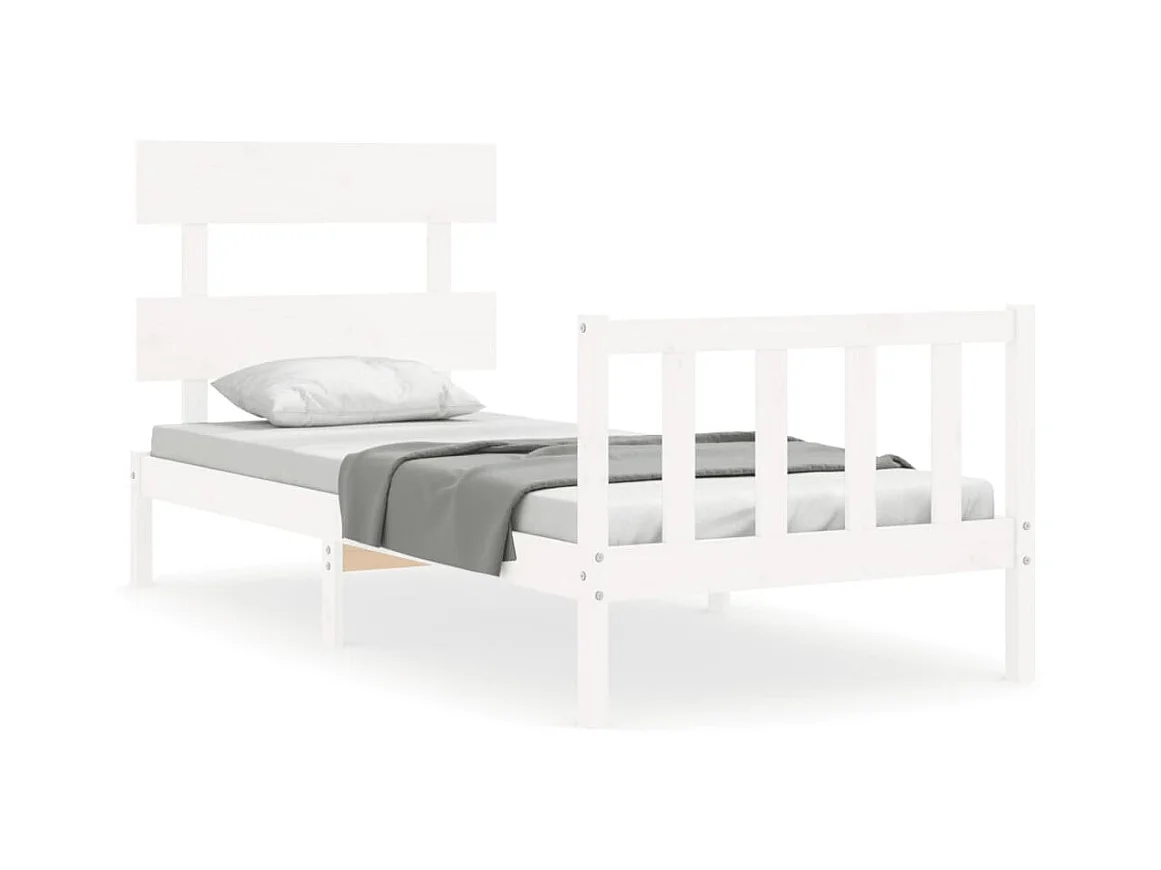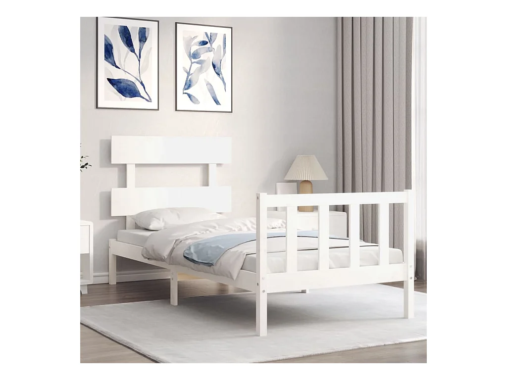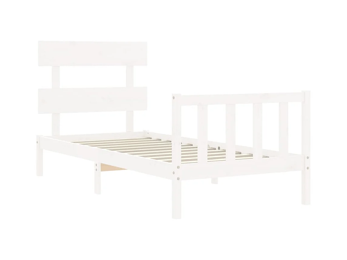 Lit simple + tête de lit blanc 90x190cm bois de pin massif FR14634