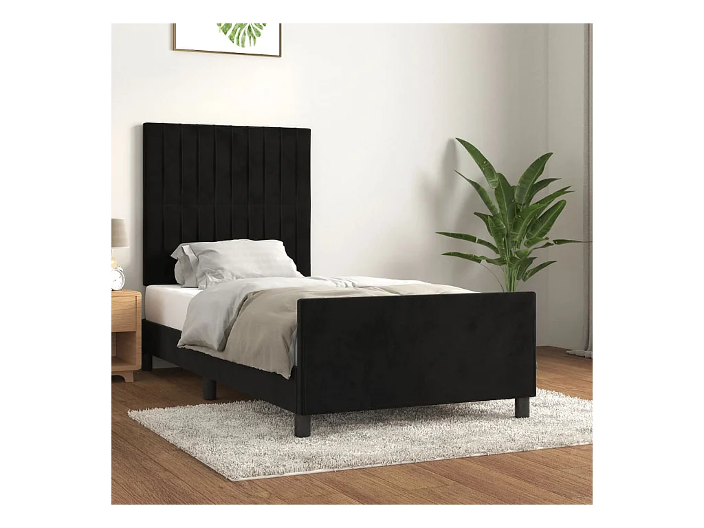 Lit-90x190 cm avec tête de lit Noir Velours EGGB92836