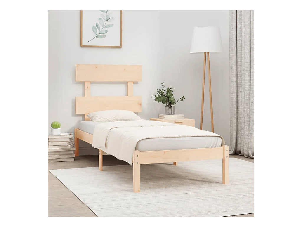 Lit-90x190 cm avec tête de lit simple bois massif EGGB31230