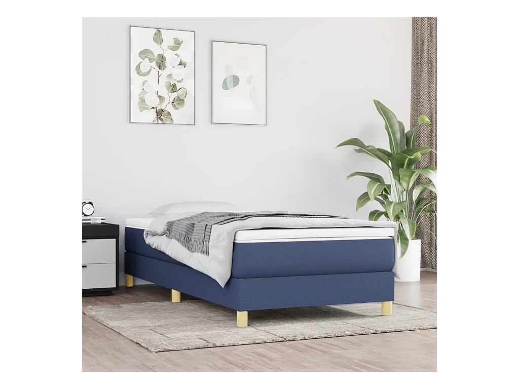 Ensemble complet boxspring - 90x190 cm + Sommier à lattes de lit + matelas Bleu Tissu FR34182