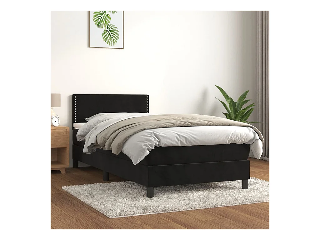 Ensemble complet boxspring - 90x190 cm + Sommier à lattes de lit + matelas Noir Velours FR91374