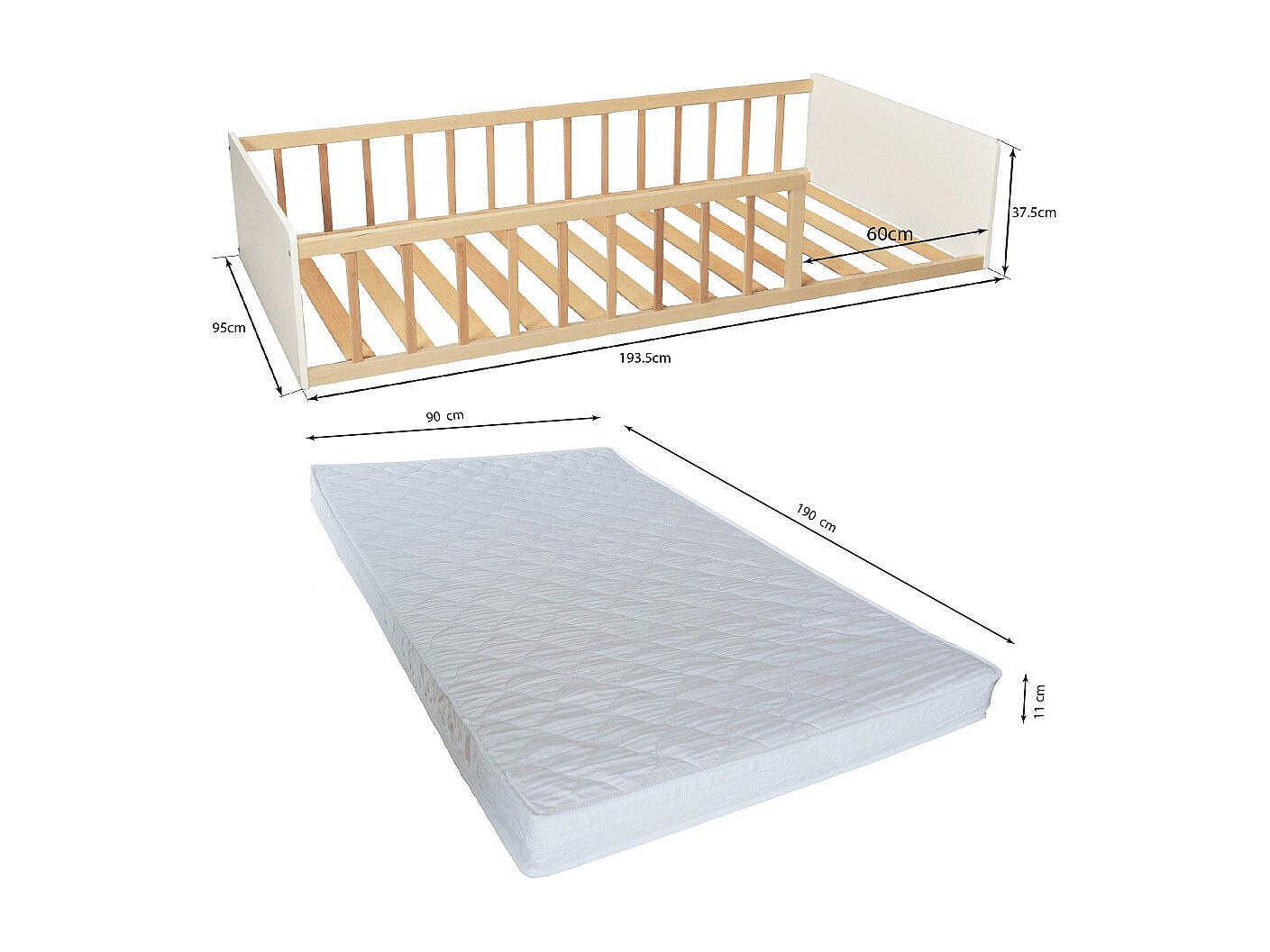 LIT 90x190 PILOU avec sommier et matelas / Blanc et Naturel