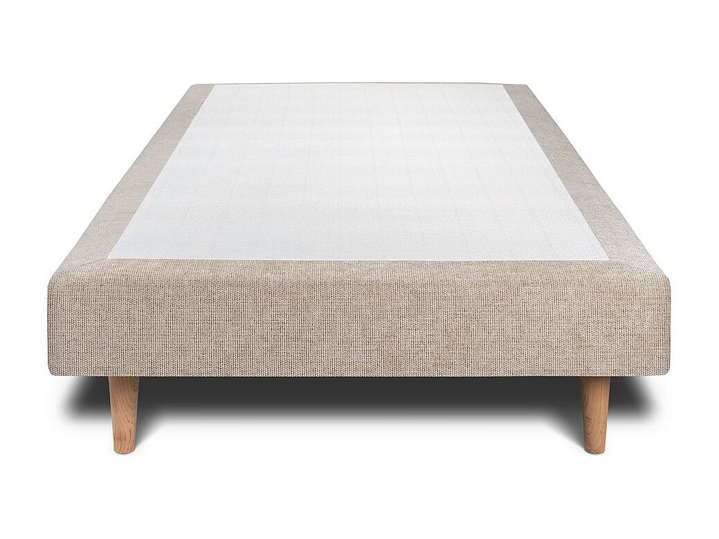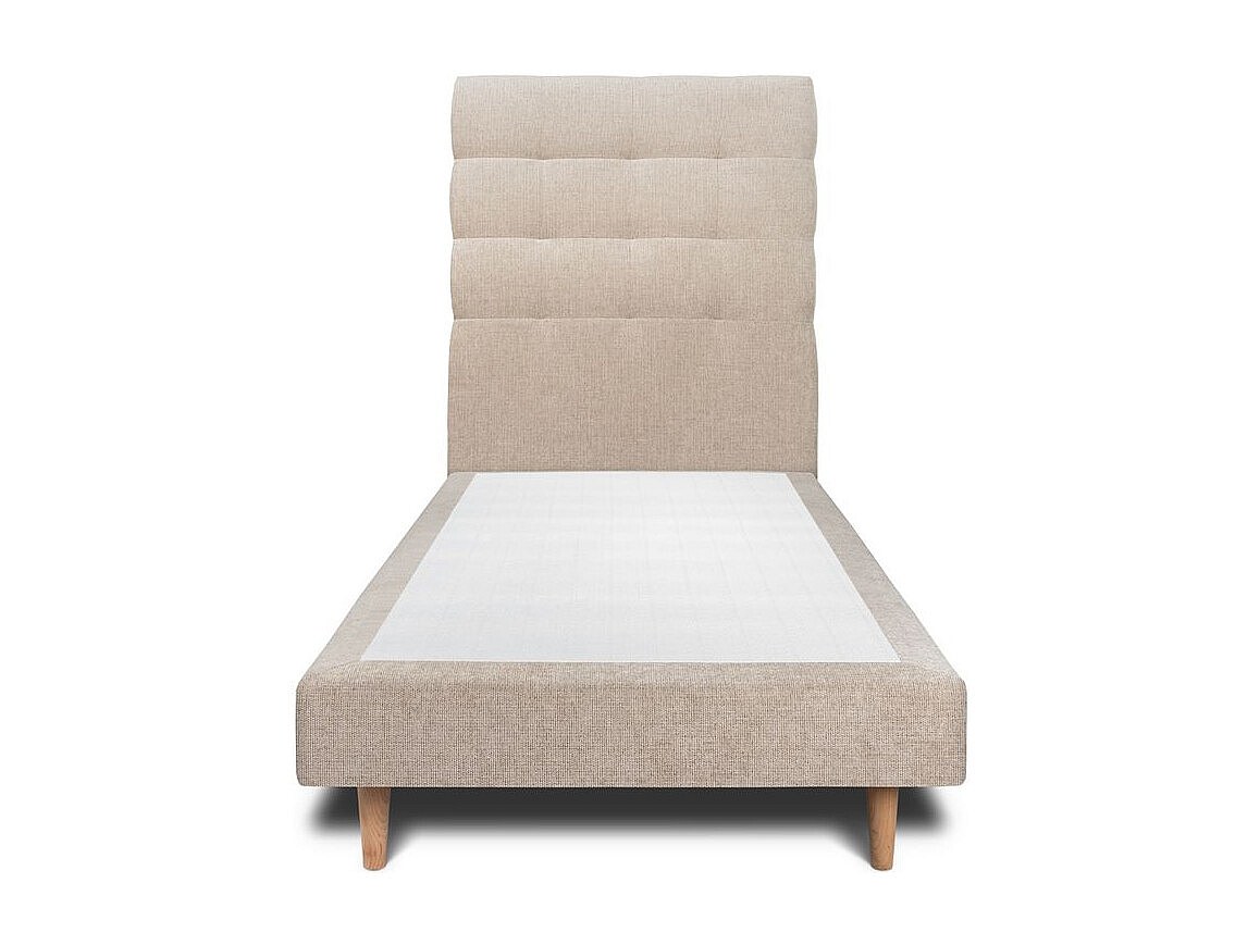 Lit 90x190cm avec tête de lit capitonnée tissu et sommier tapissier beige brun - Hauteur totale : 29cm