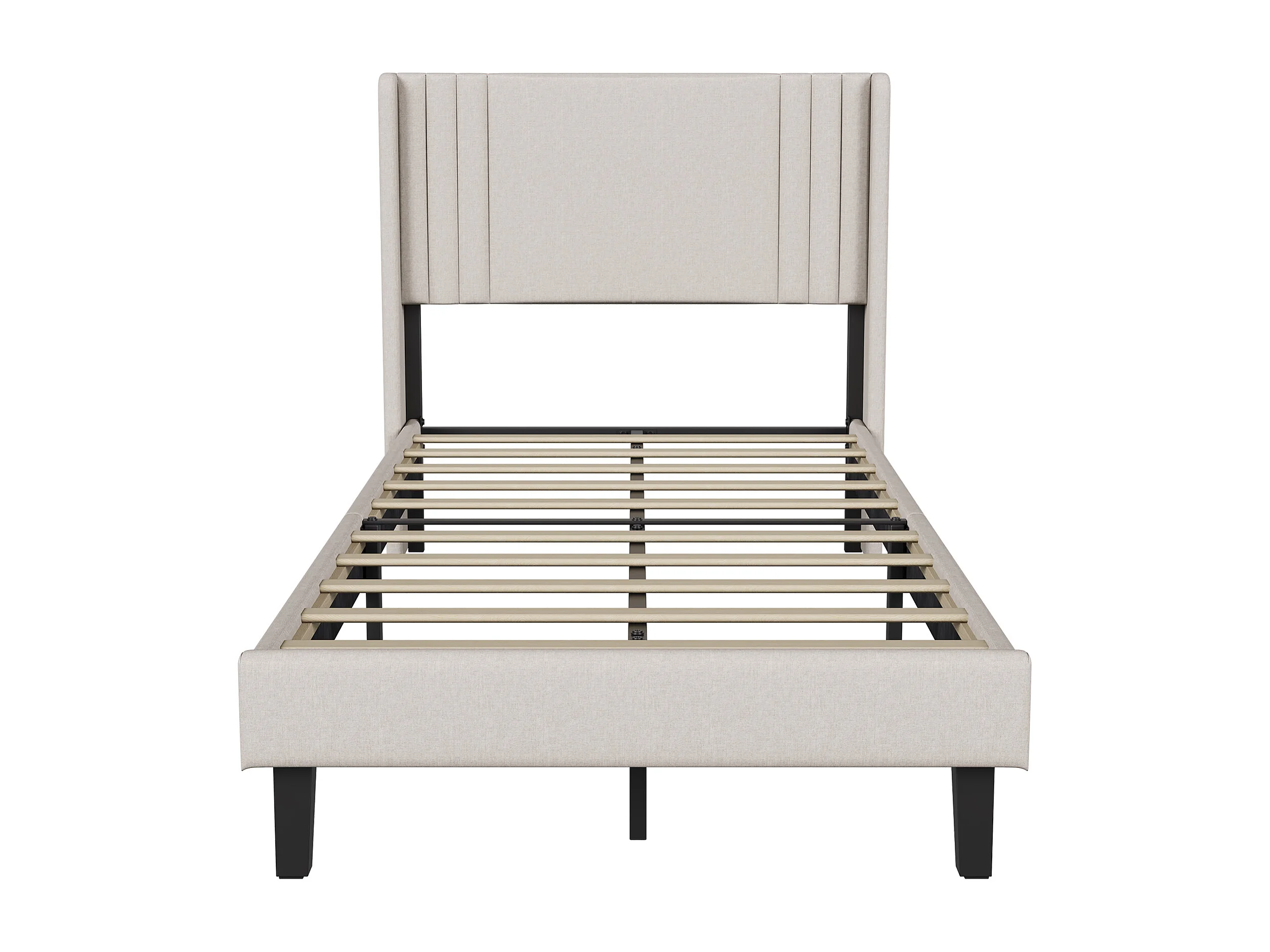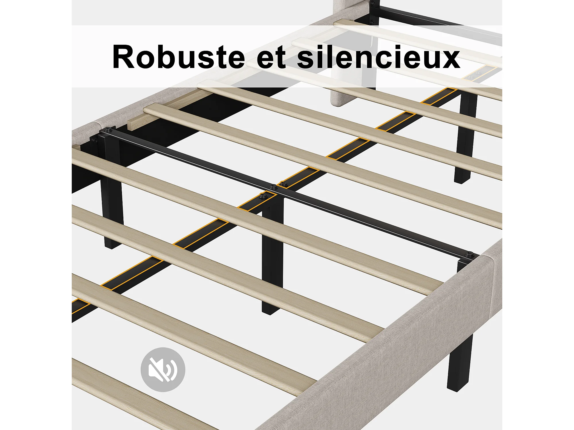Lit 90x200 Beige Lin - Tête de Lit Capitonnée Moderne - Cadre à Lattes Robuste - Capacité 800 lbs - Montage Rapide