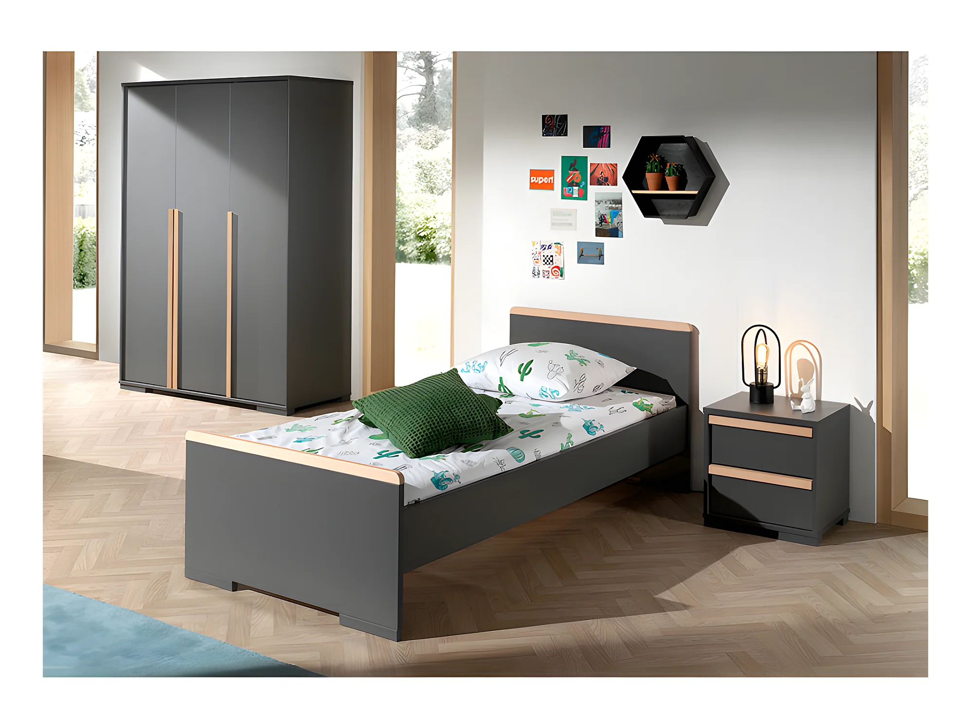 Pack - Lit Enfant, Chevet & Armoire 3 Portes "London" Gris Anthracite