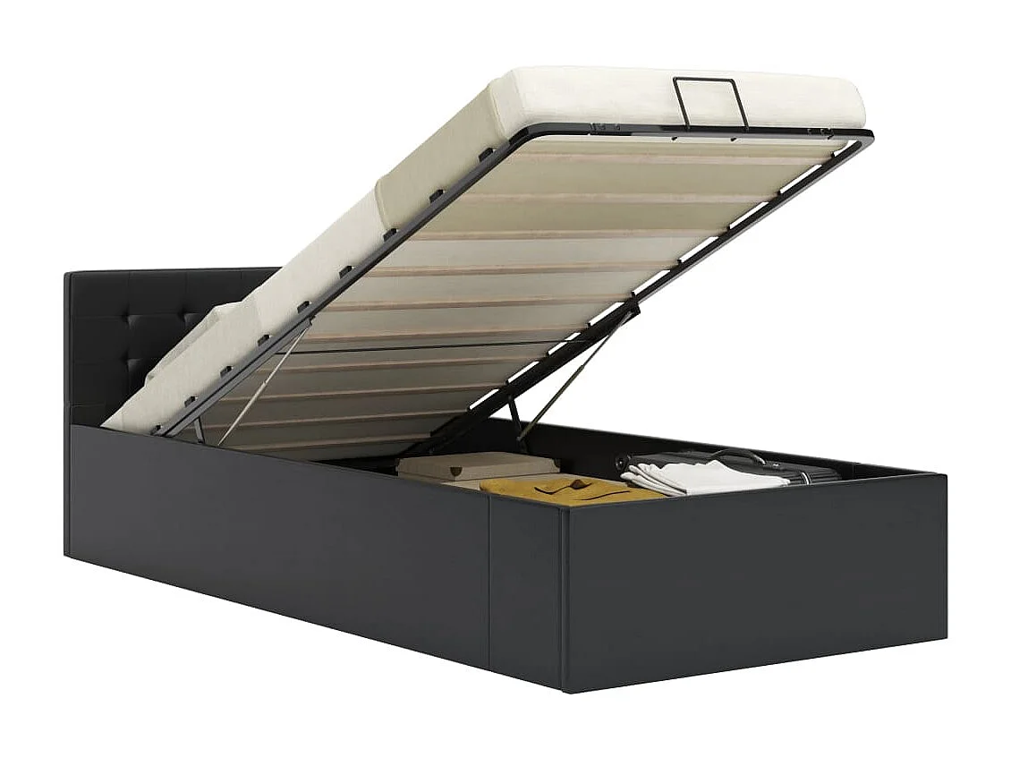 Lit-90x200 cm à rangement hydraulique Noir Similicuir EGGB68575