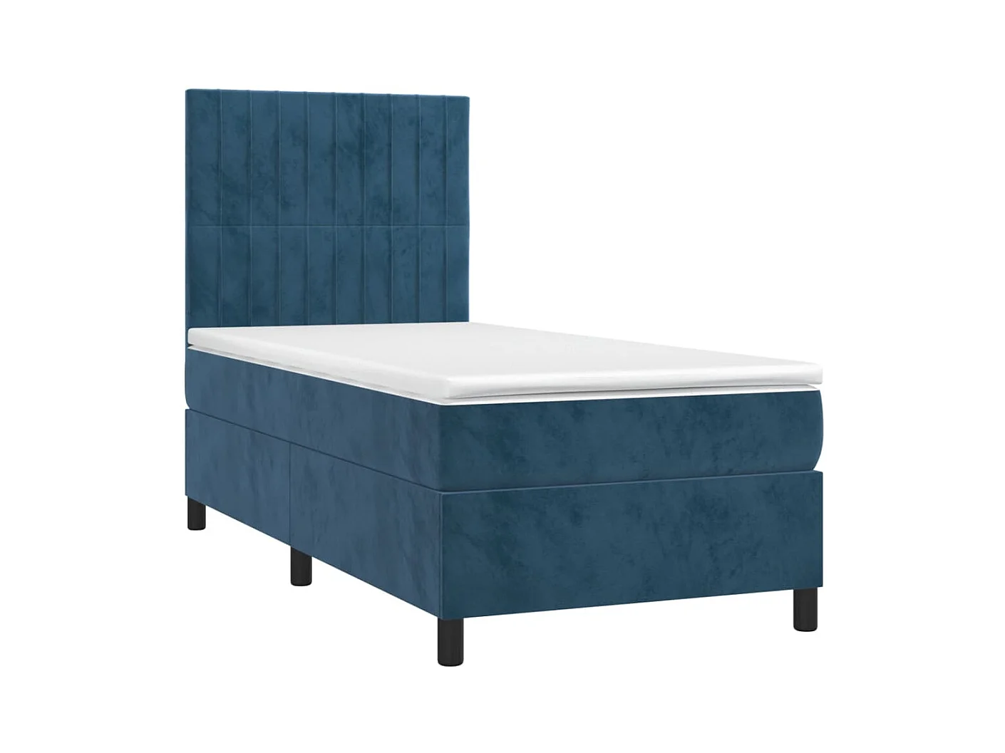 Ensemble complet boxspring - 90x200 cm + sommier à lattes de lit+ matelas LED Bleu foncé Velours SRGW40420