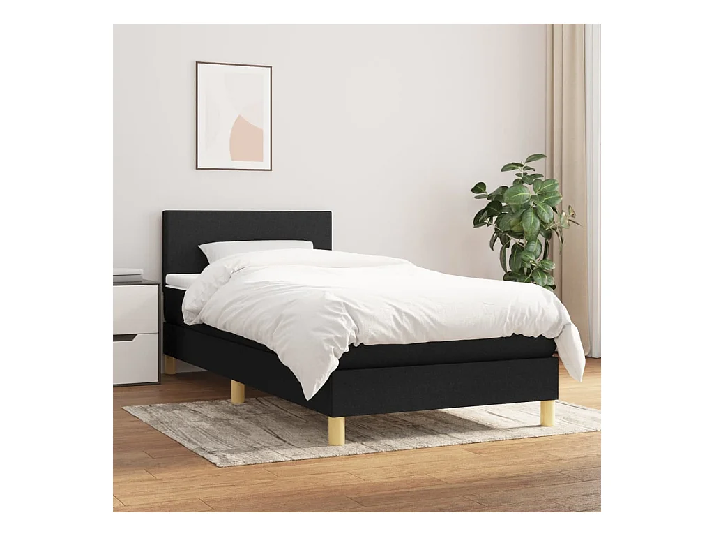 Ensemble complet boxspring - 90x200 cm + sommier tapissier + matelas Noir Tissu SRGW22124