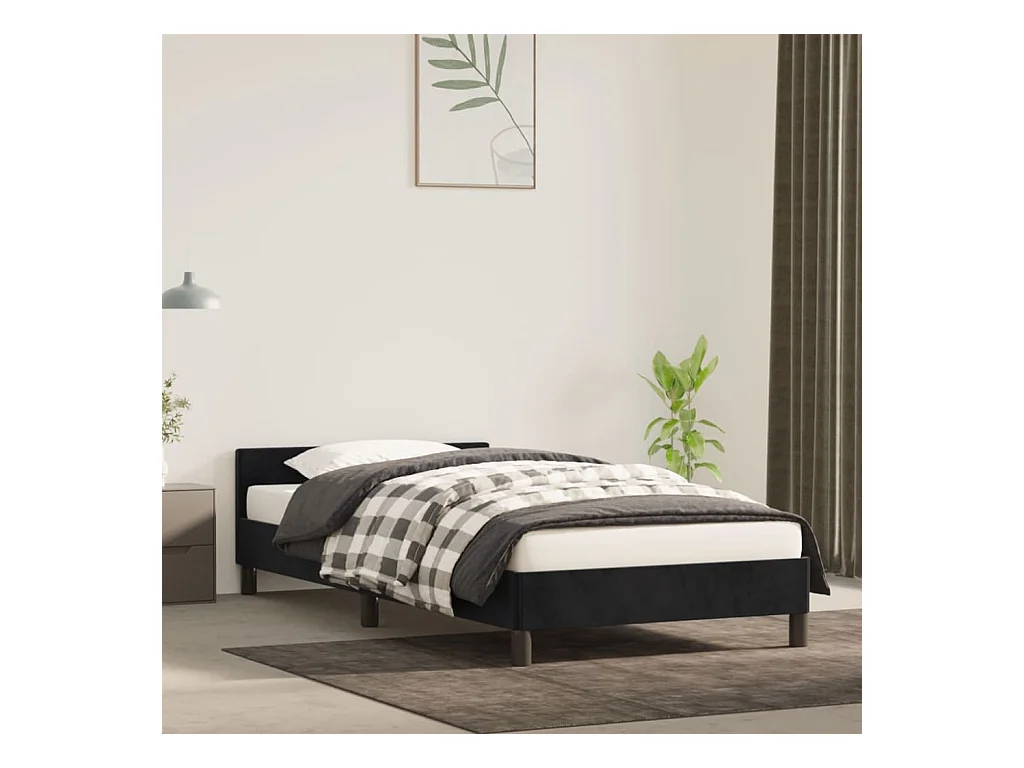 Lit-90x200 cm avec tête de lit Noir Velours EGGB54854
