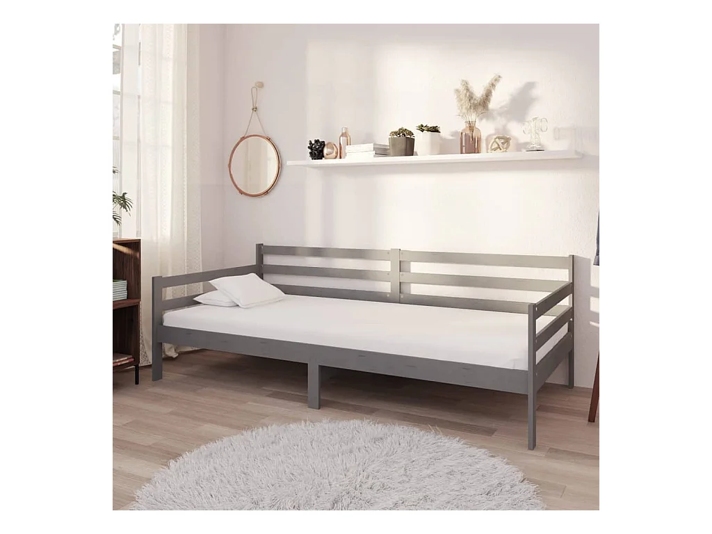 Lit-90x200 cm de repos + matelas Gris Bois de pin massif HOQW64429