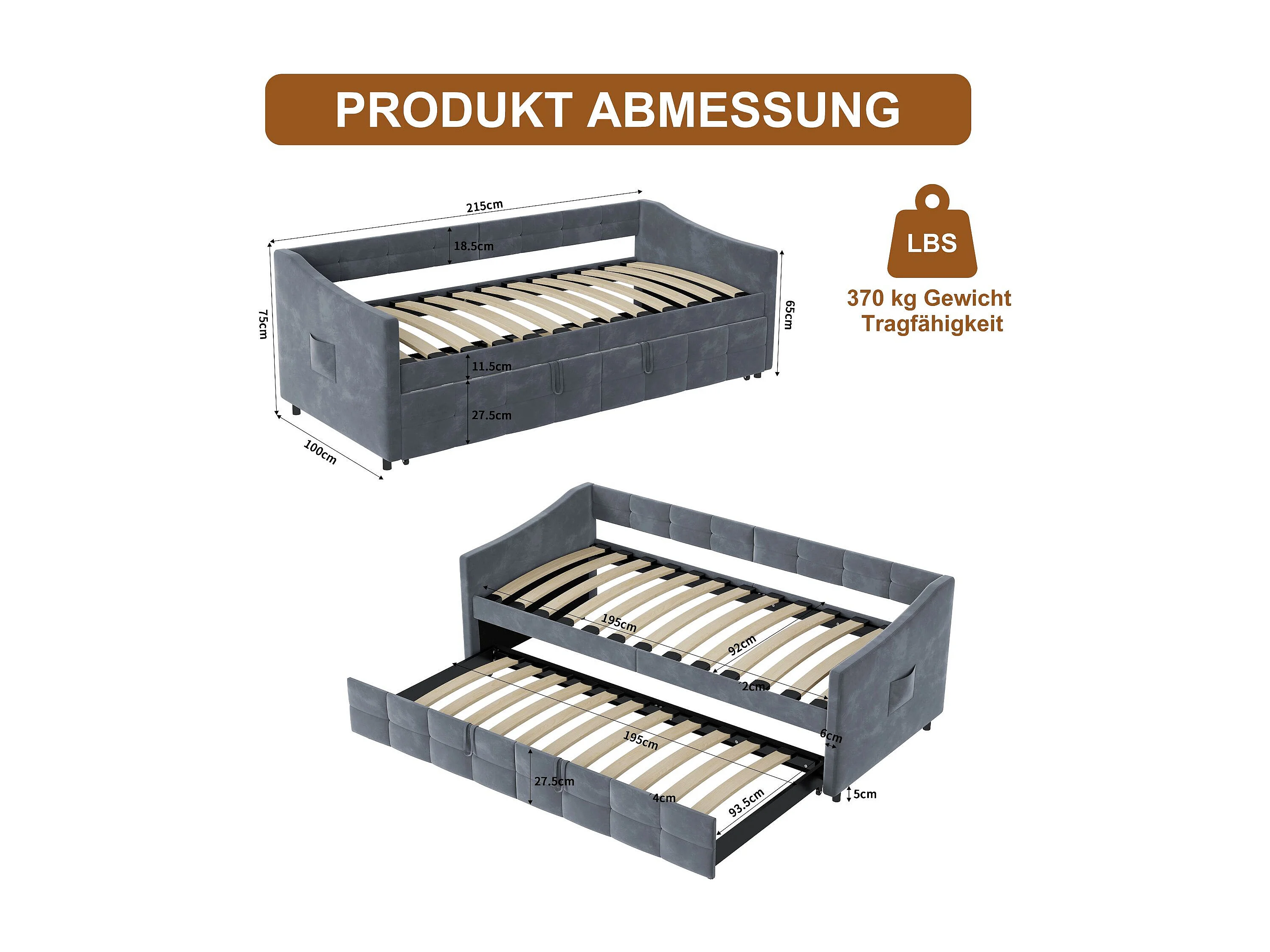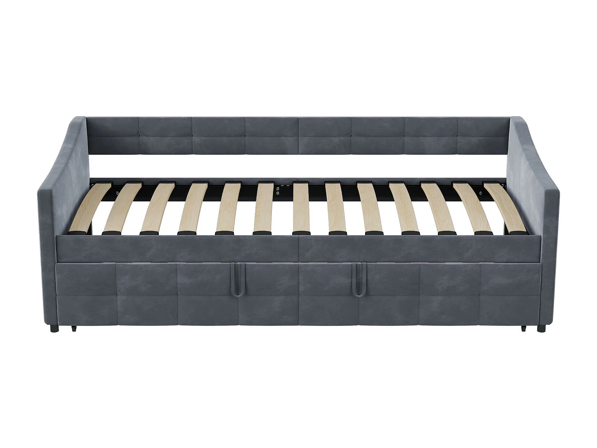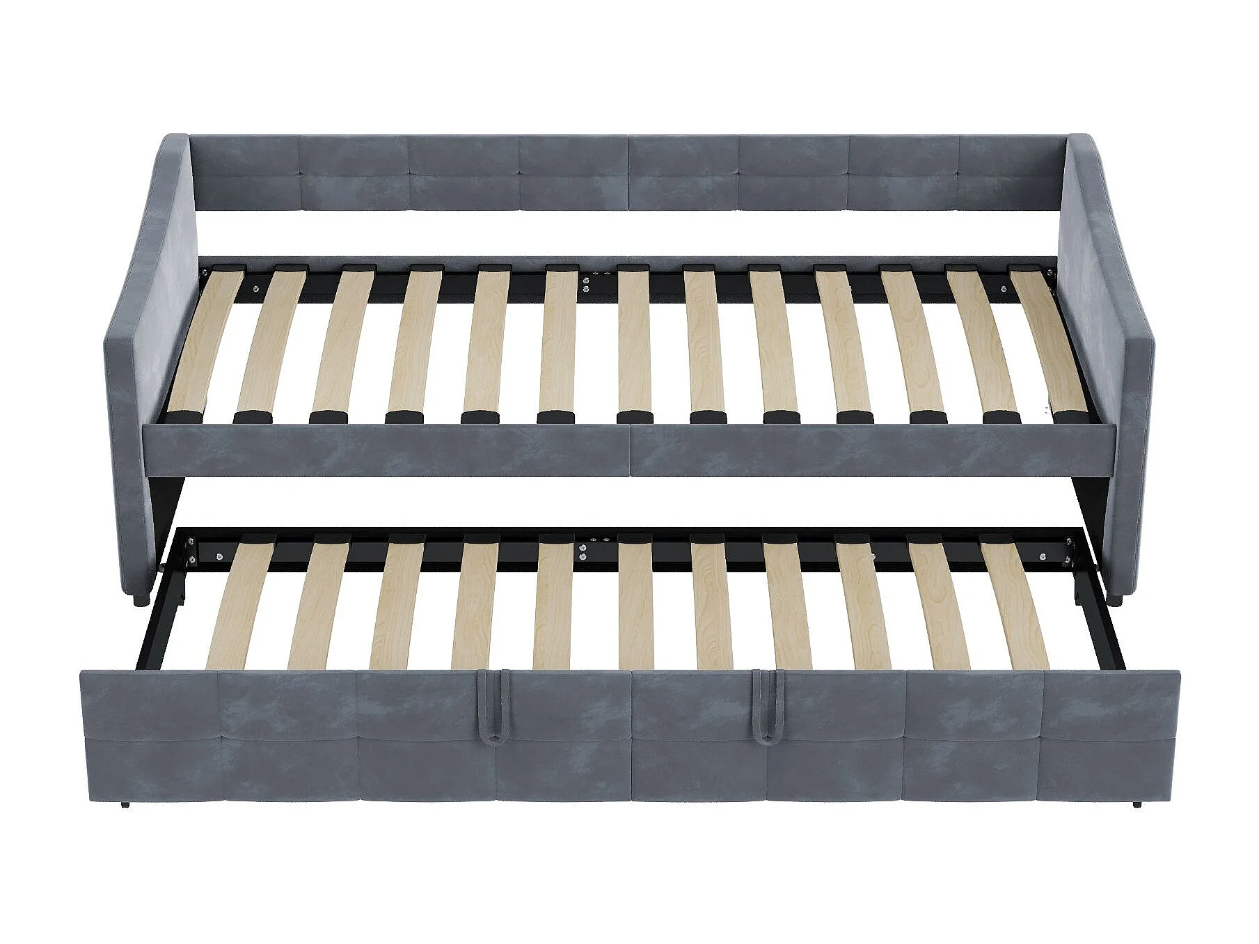 Lit 90x200 cm avec sommier à lattes - Canapé lit 90x200 cm avec 2ème lit - lit banquette 2 places - Canapé - tissu en velours - gris
