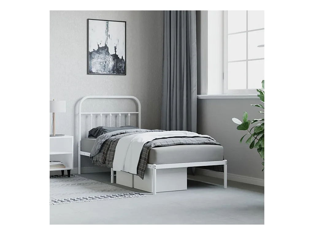 Lit simple métal + tête de lit/pied de lit blanc 90x200 cm FR41444