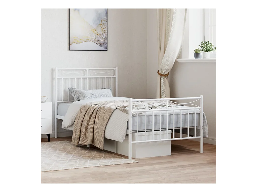 Lit simple métal + tête de lit/pied de lit blanc 90x200 cm FR41444