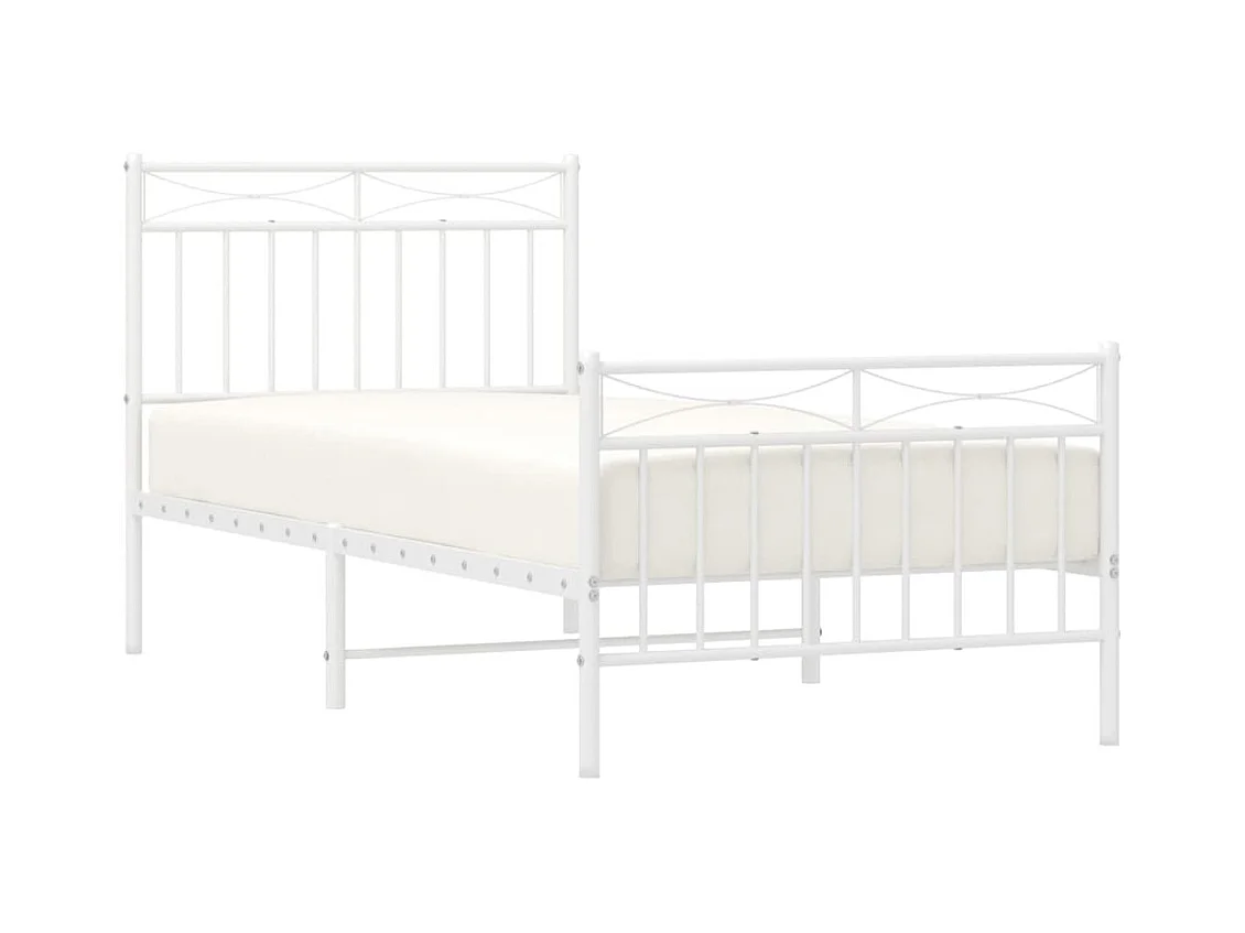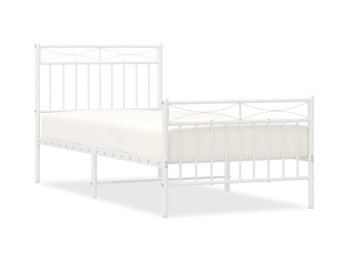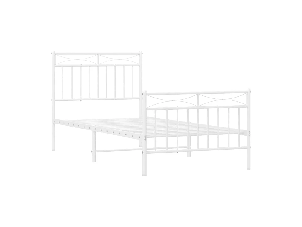 Lit simple métal + tête de lit/pied de lit blanc 90x200 cm FR28374