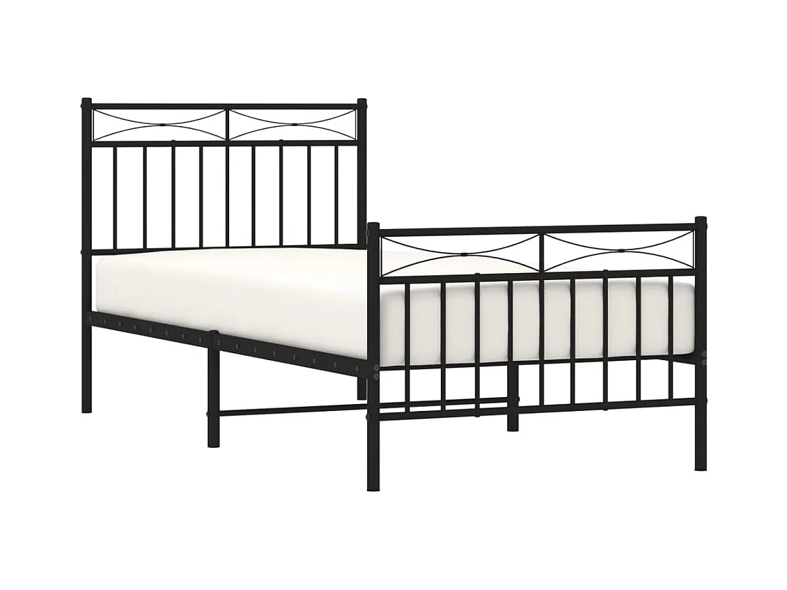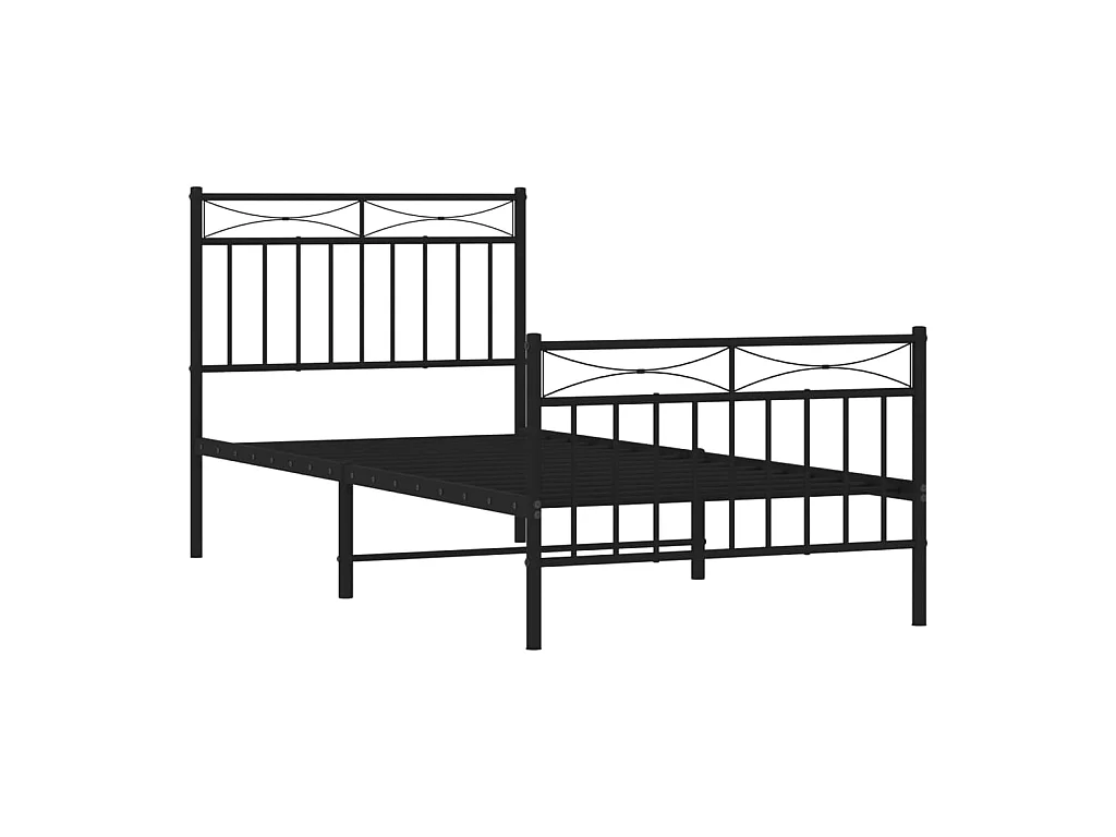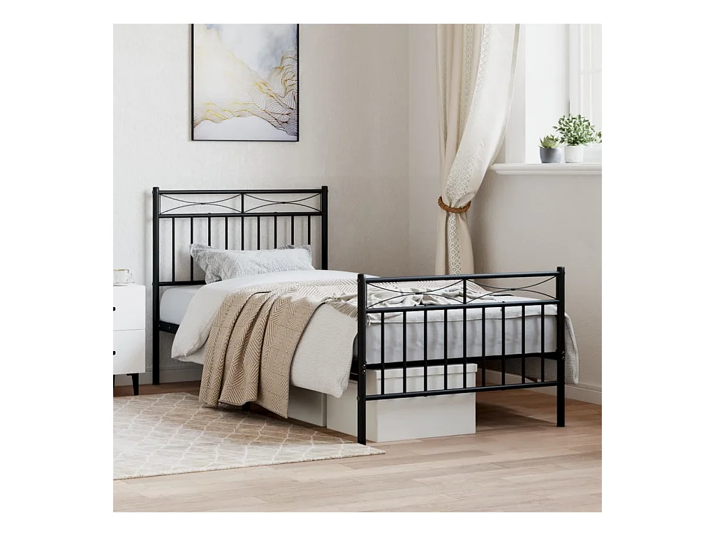 Lit simple métal + tête de lit/pied de lit noir 90x200 cm FR36367