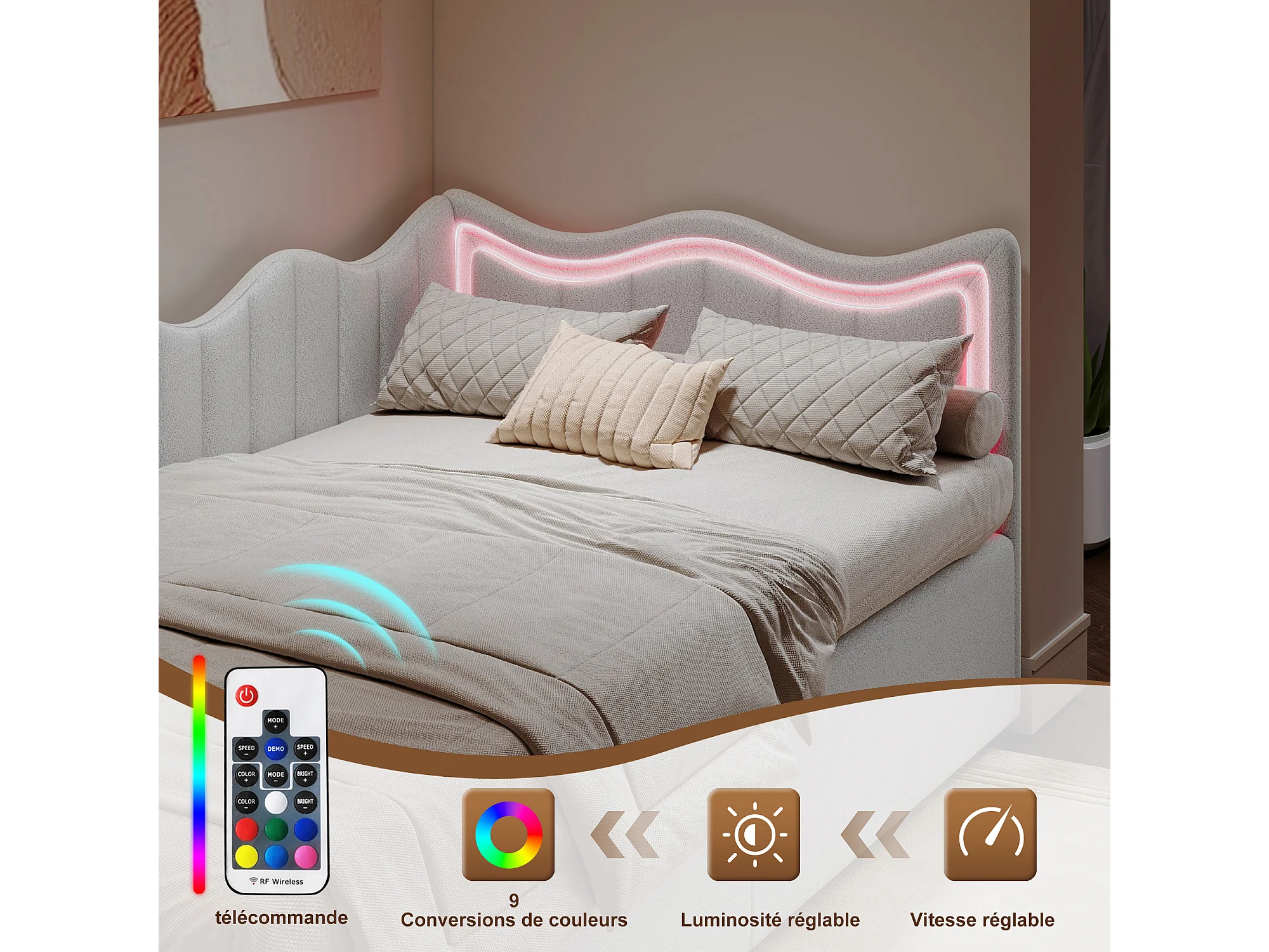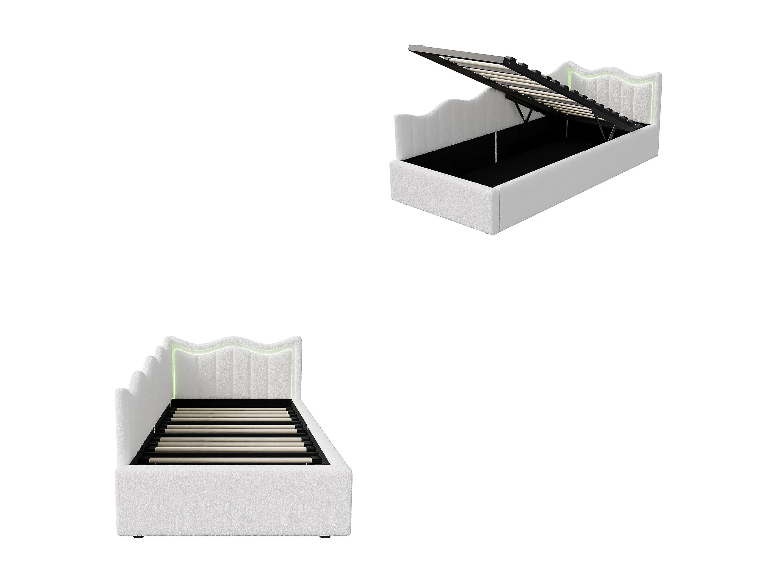 Lit simple 90x200 cm - NEXU - lit enfant 90x200 cm avec LED - lit coffre 90x200 cm avec sommier à lattes - tissu en velours - blanc