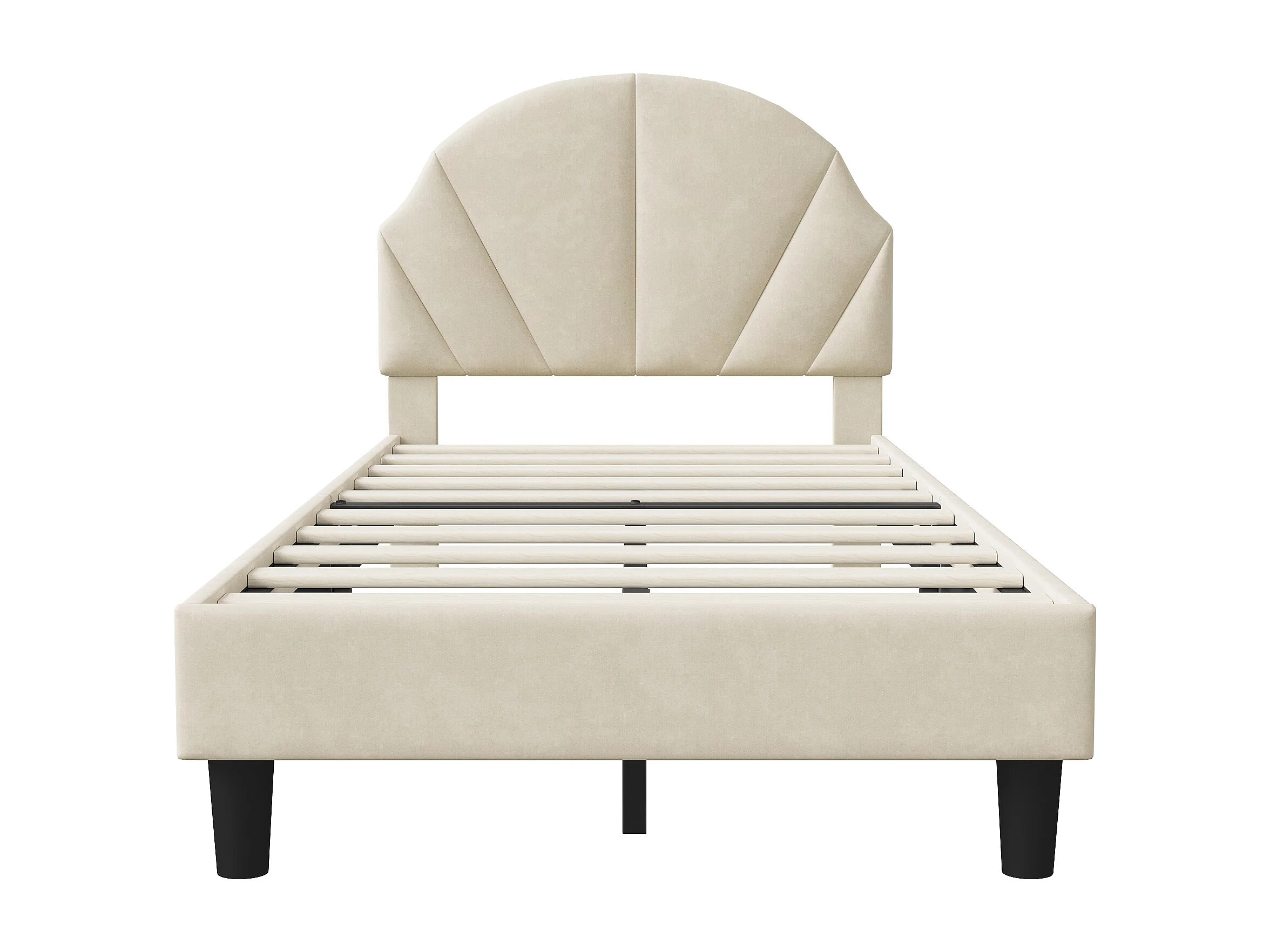 Lit 90x200 cm - NEXU - lit enfant 90x200 cm avec tissu en velours - cadre de lit fille 90x200 cm avec sommier à lattes - beige