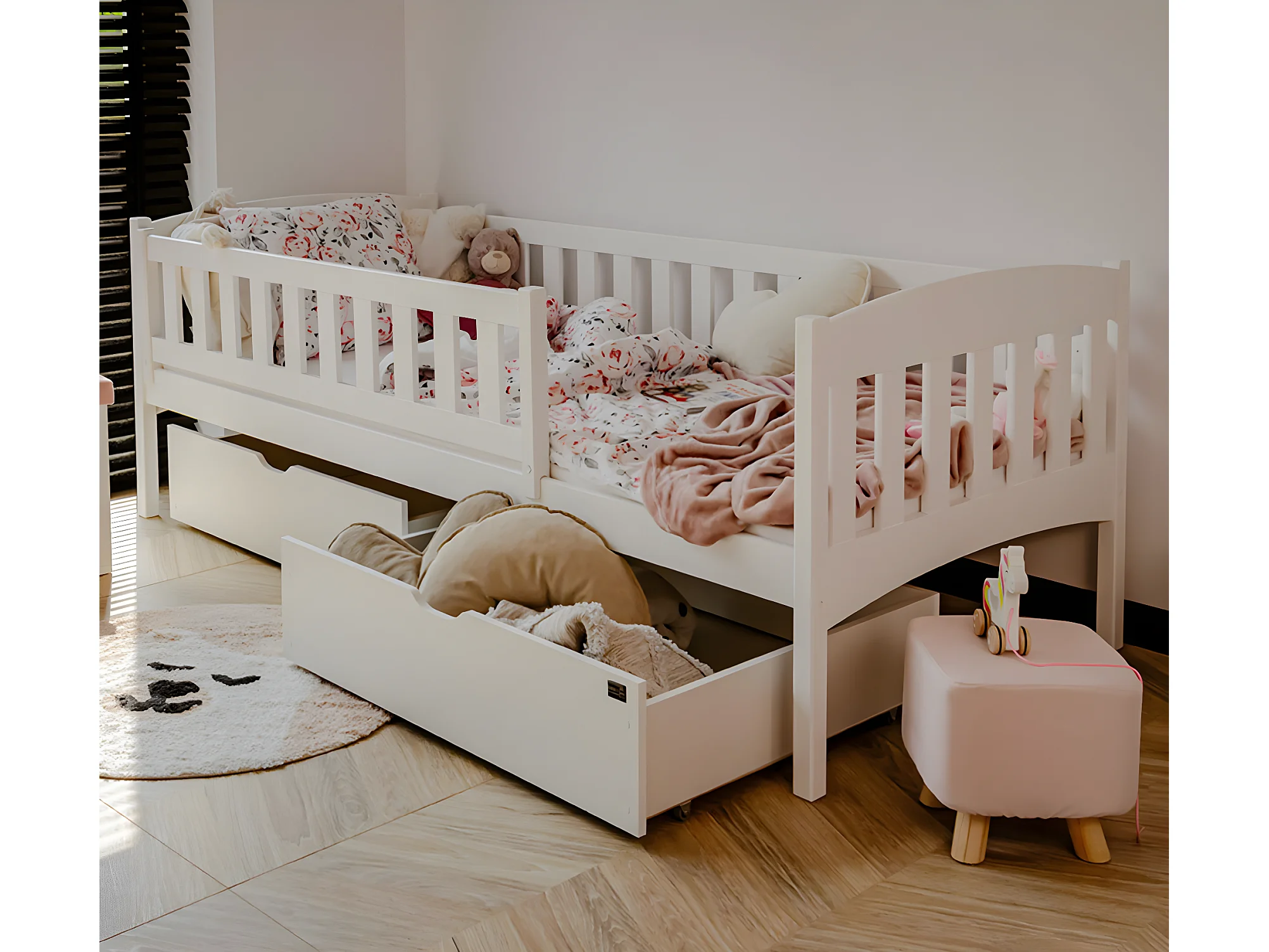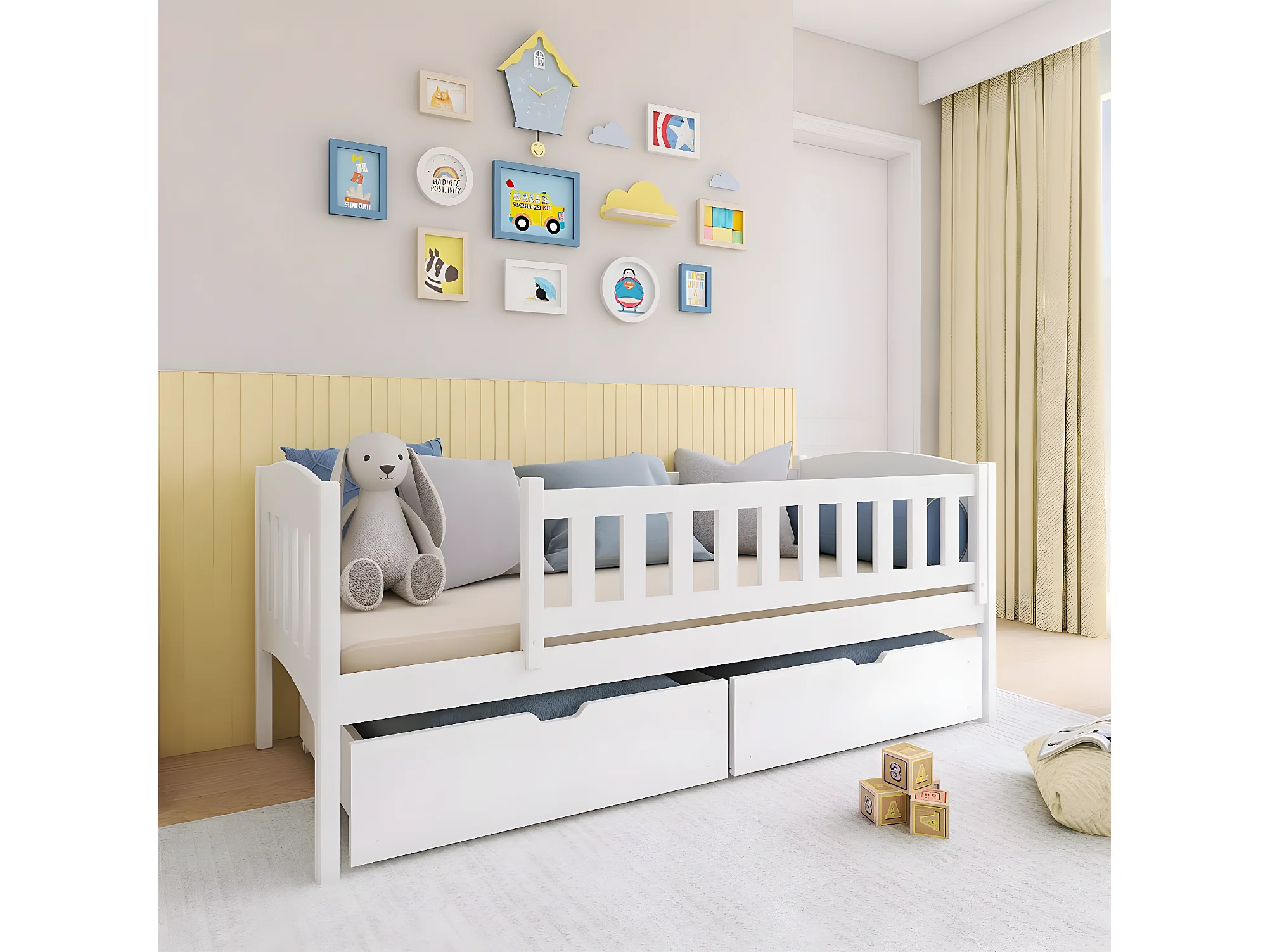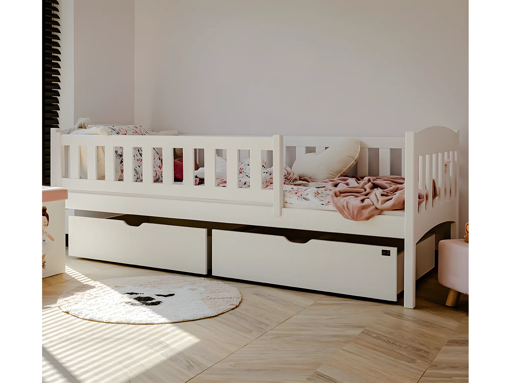 Lit 90x200 sommier et tiroirs inclus Samuel Blanc
