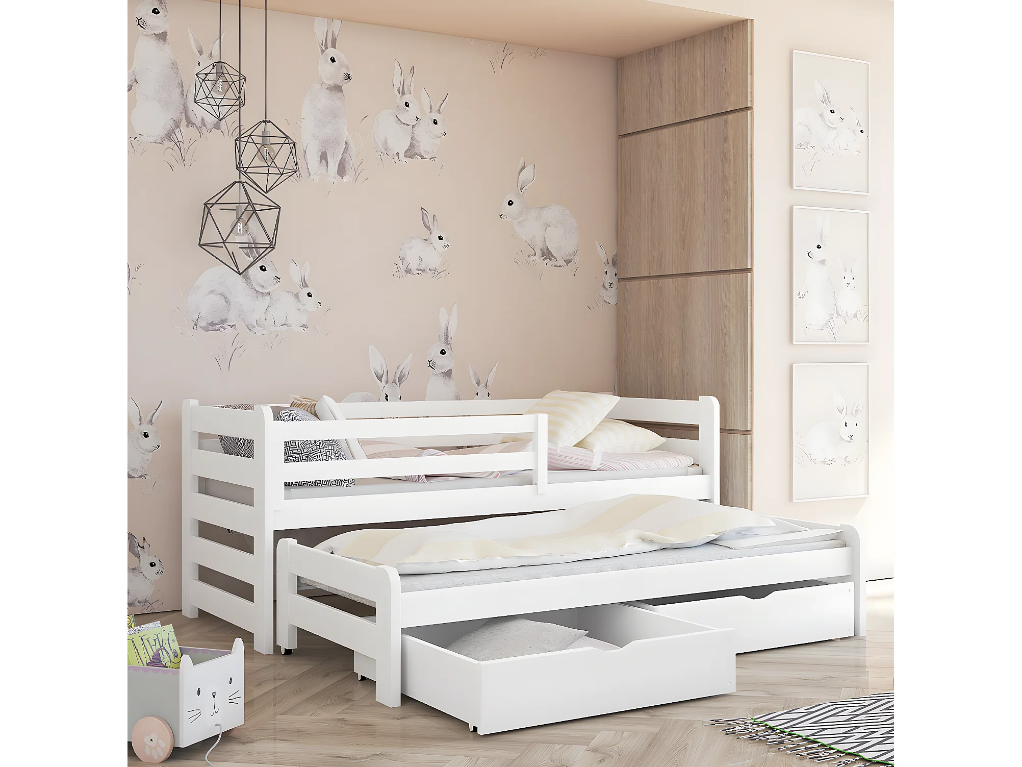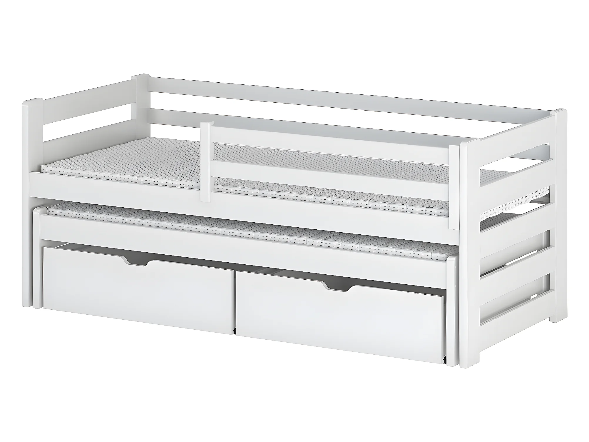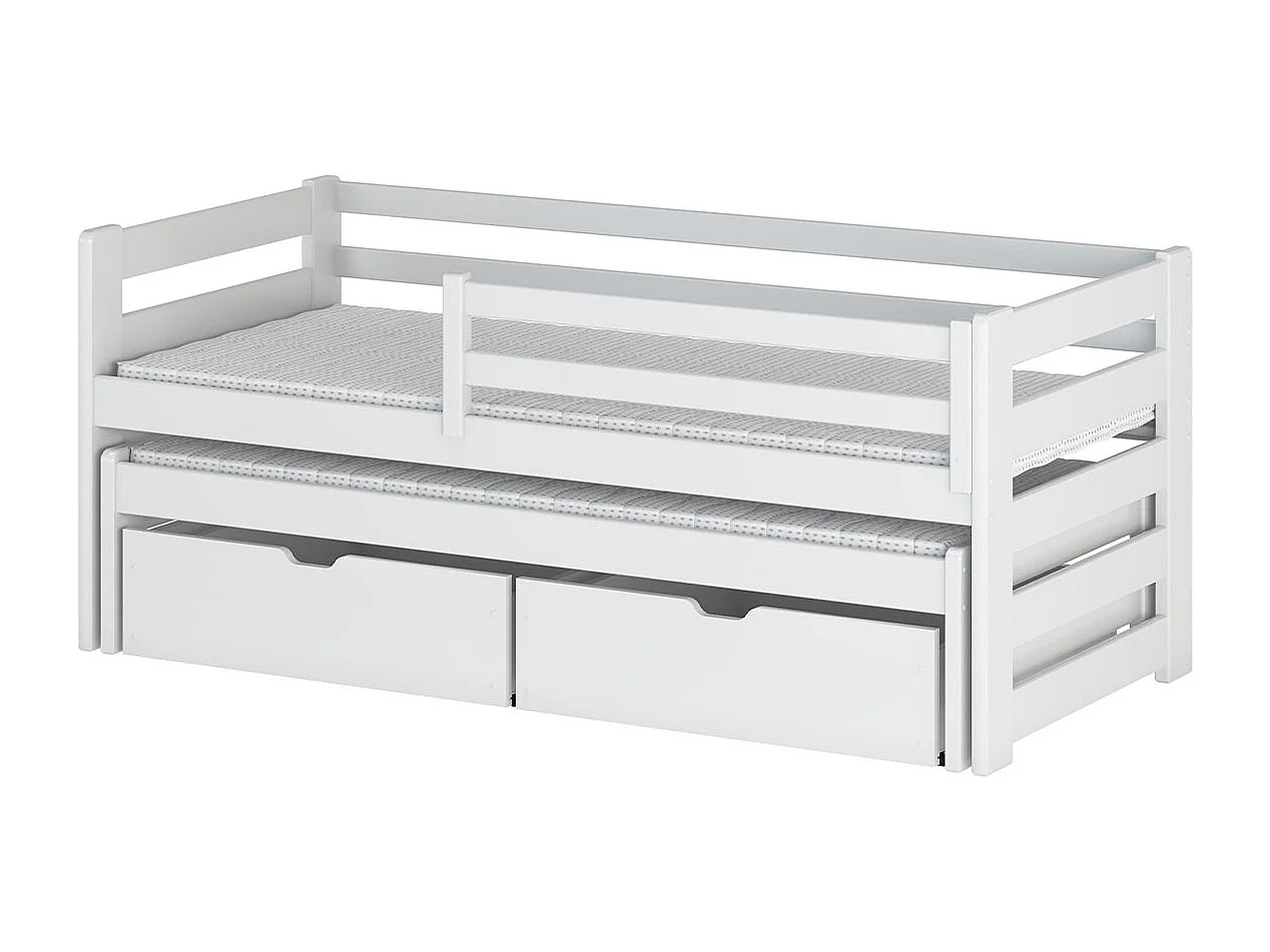 Lit 90x200 sommier lit gigogne et tiroirs inclus Jordan Blanc