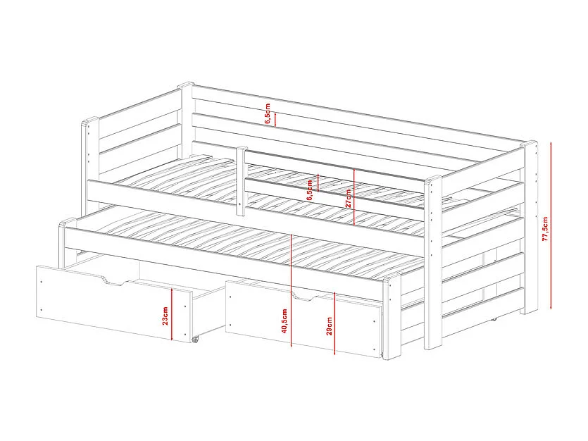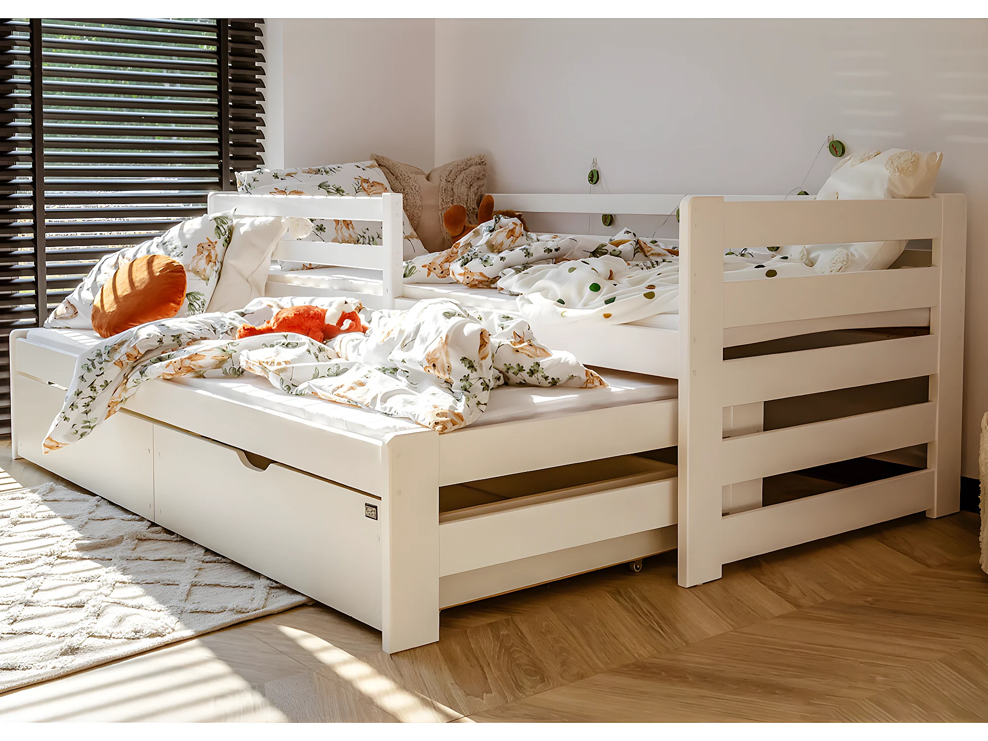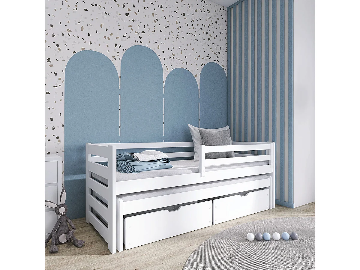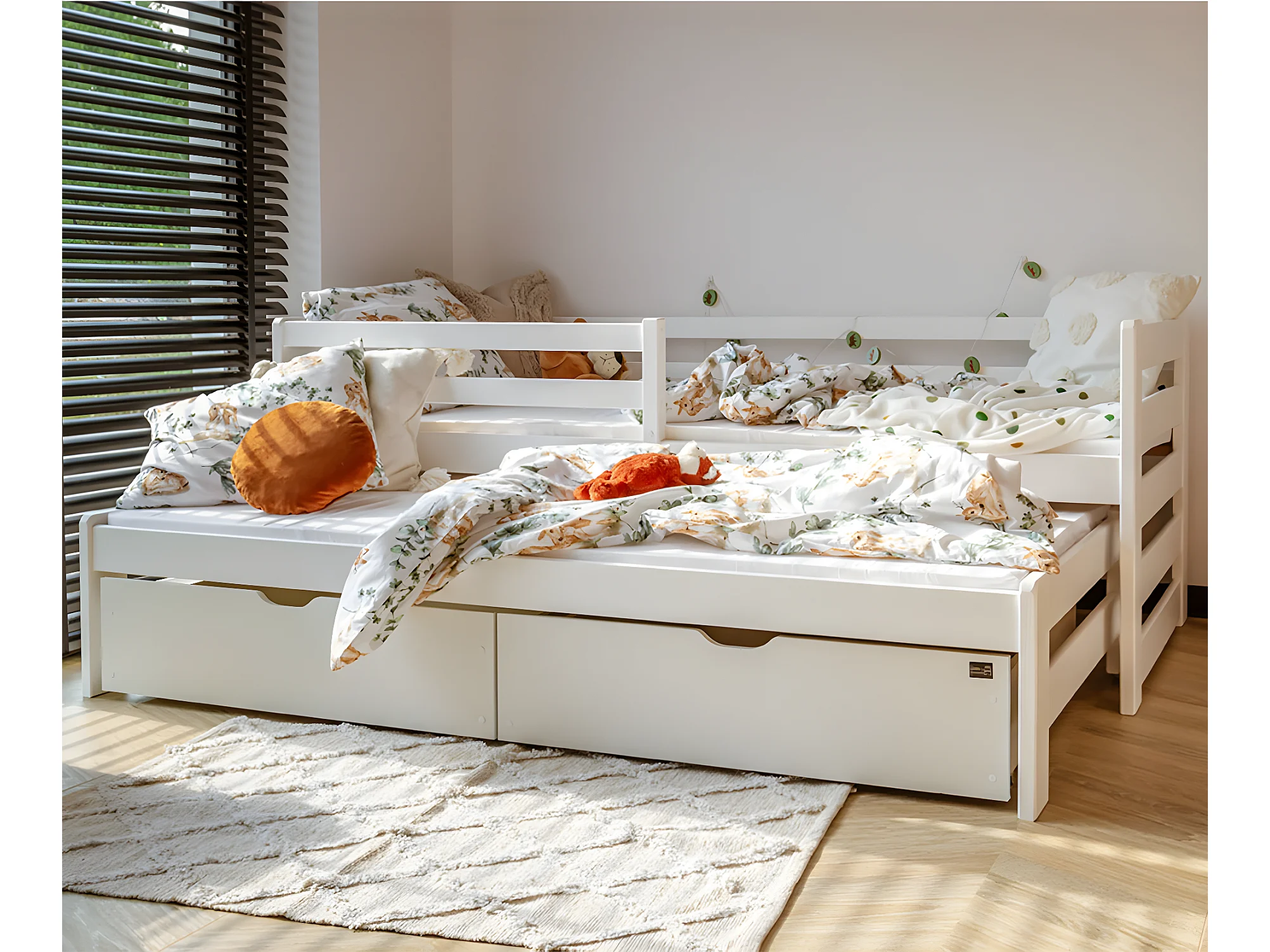 Lit 90x200 sommier lit gigogne et tiroirs inclus Jordan Blanc