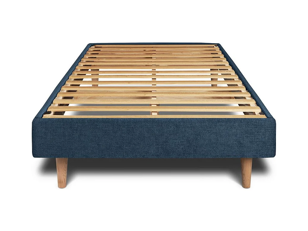 Lit 90x200cm avec tête de lit tapissier tissu et sommier kit Bleu - Hauteur totale : 29cm