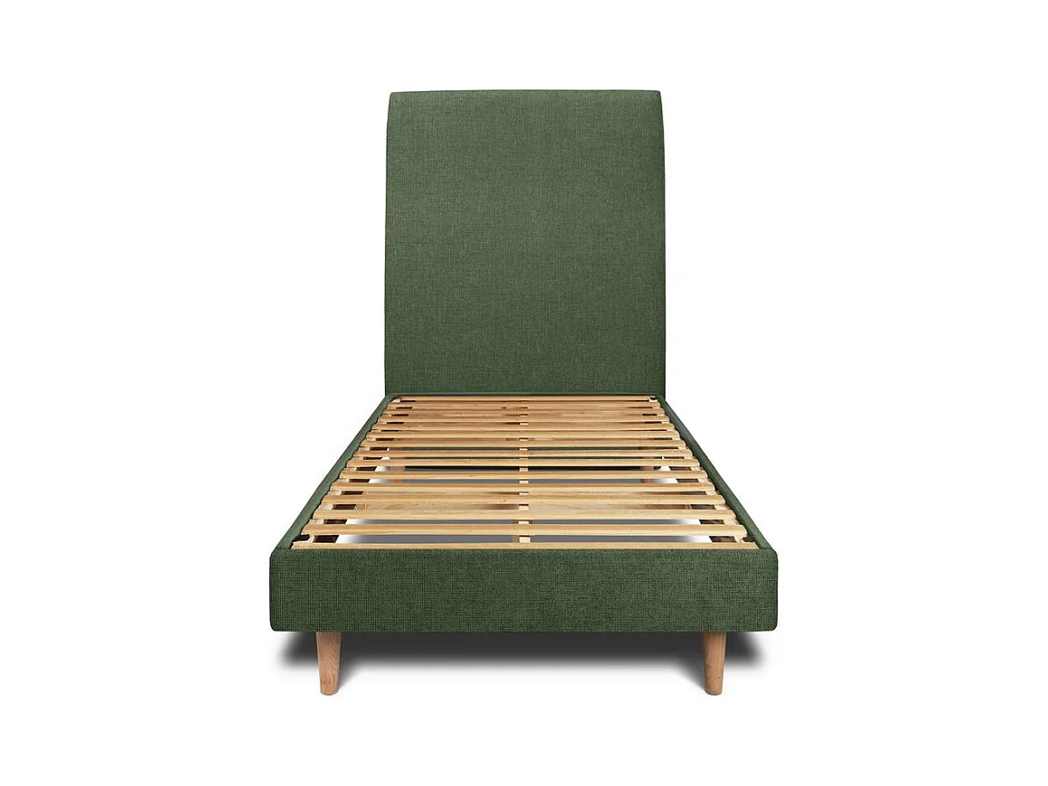 Lit 90x200cm avec tête de lit tapissier tissu et sommier kit vert - Hauteur totale : 29cm