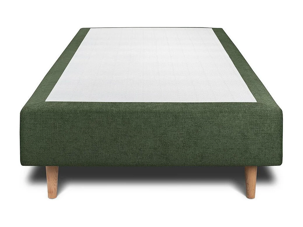 Lit 90x200cm avec tête de lit tapissier tissu et sommier tapissier vert - Hauteur totale : 35cm
