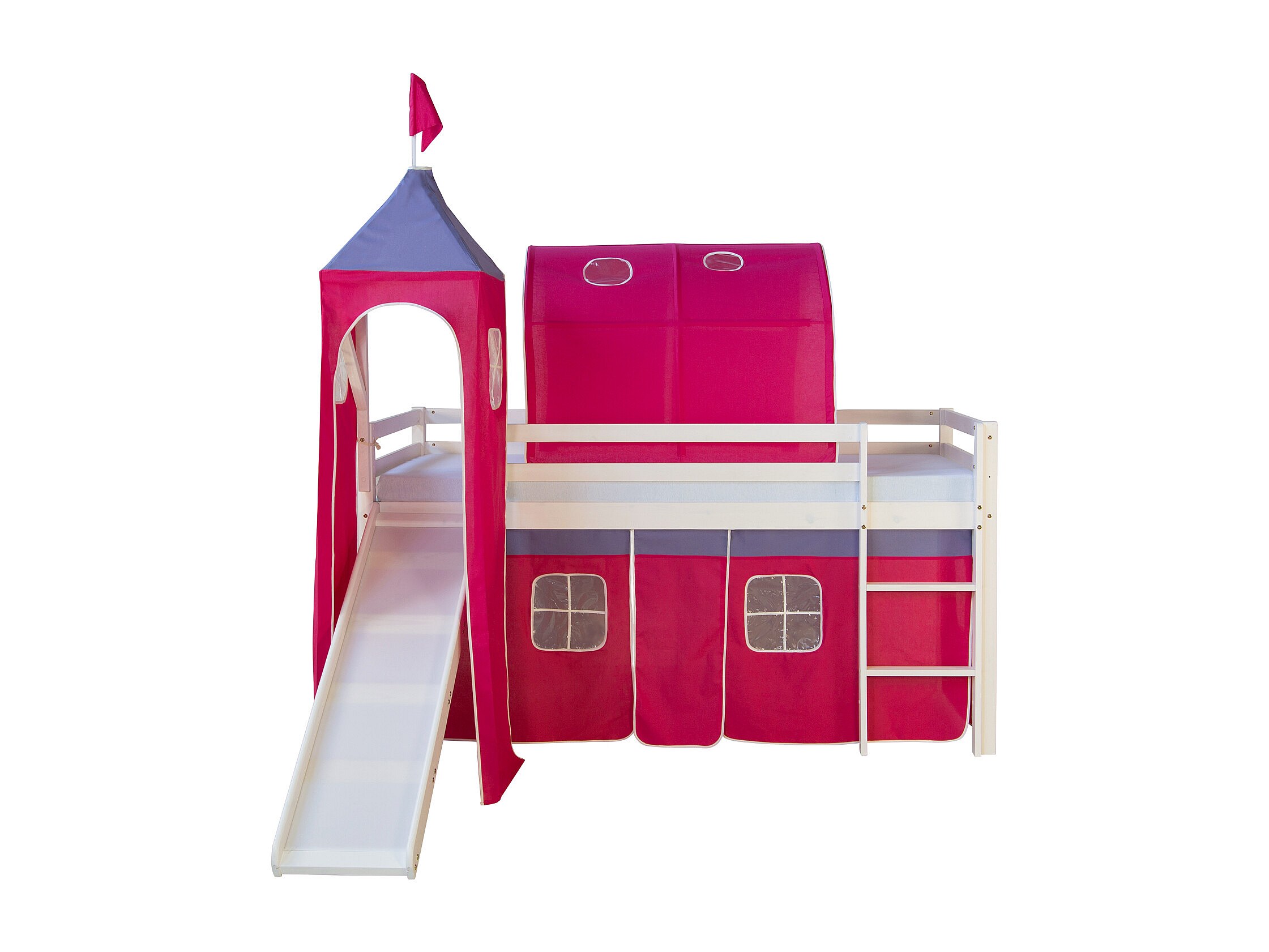 Lit mezzanine enfants et rideaux rose 90x200cm bois pin massif FR16278