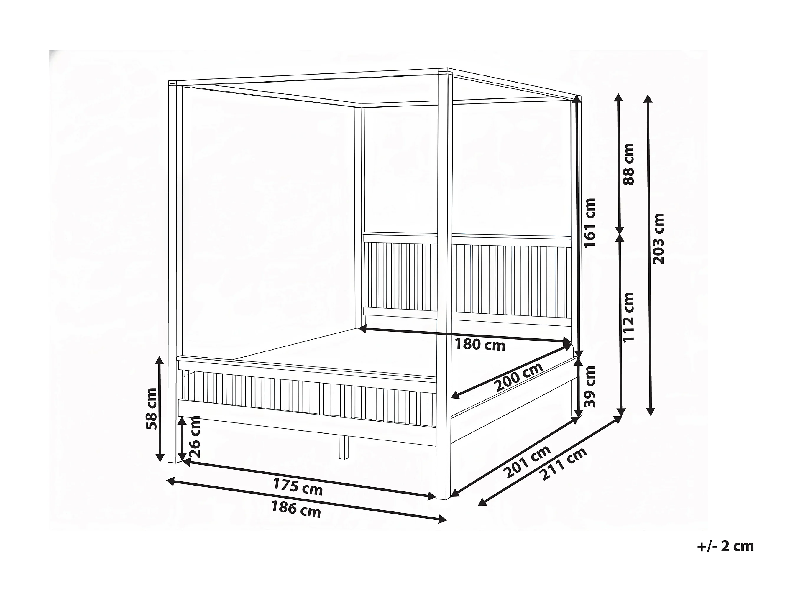 Lit à baldaquin Bois HARFLEUR 180 x 200 cm Marron clair