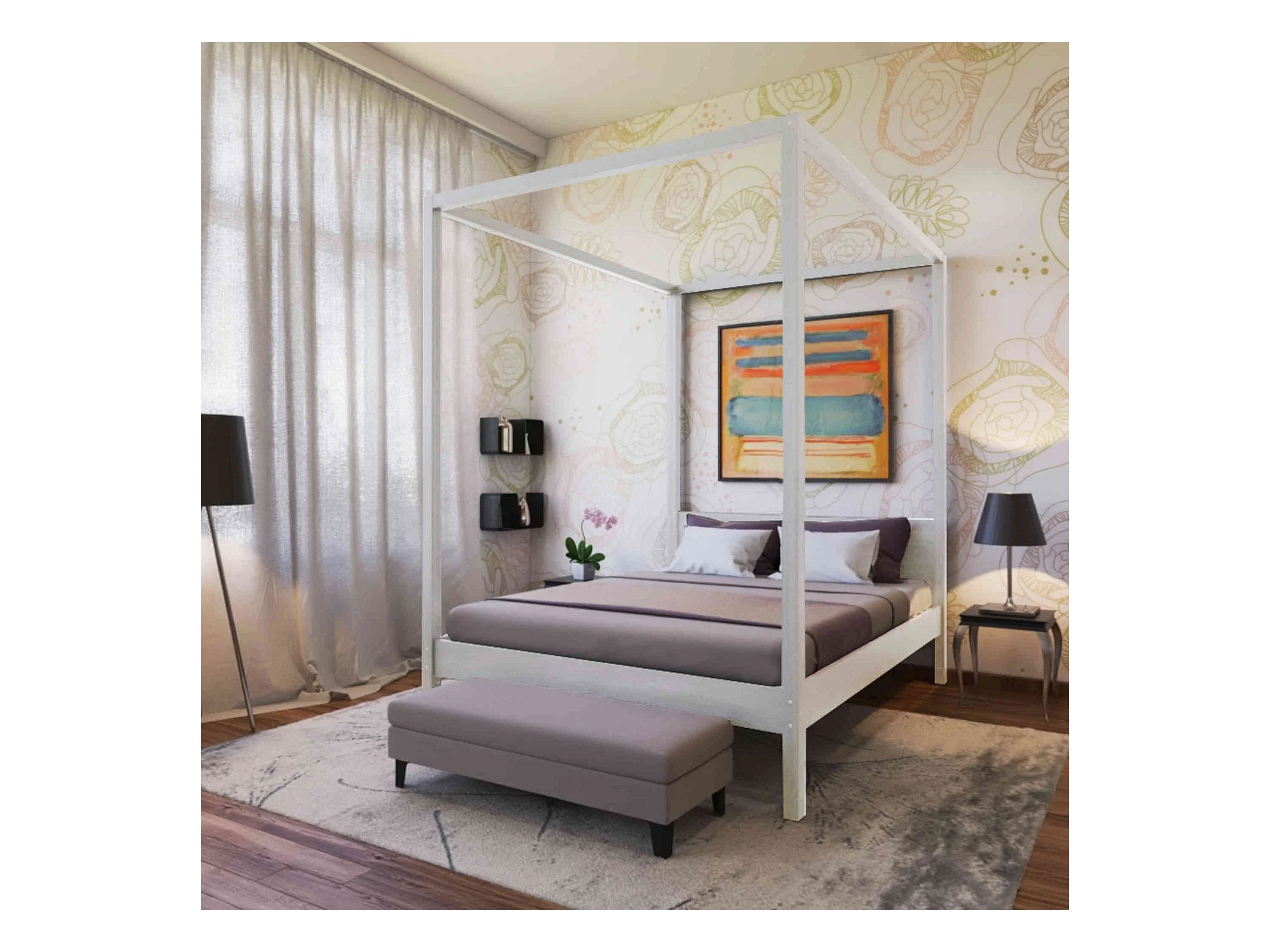 Lit à baldaquin en bois blanc 140x190 - LT14032