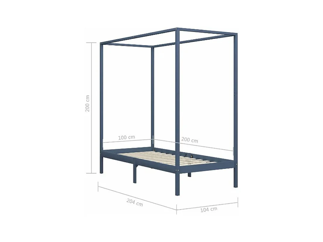 Lit à baldaquin pin massif gris Badat 100x200