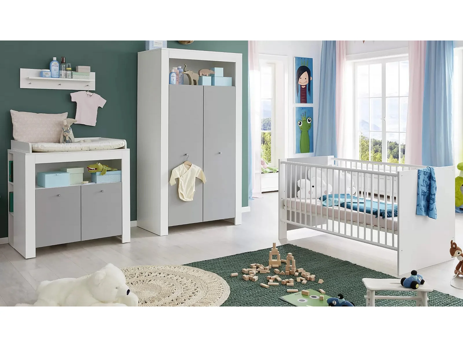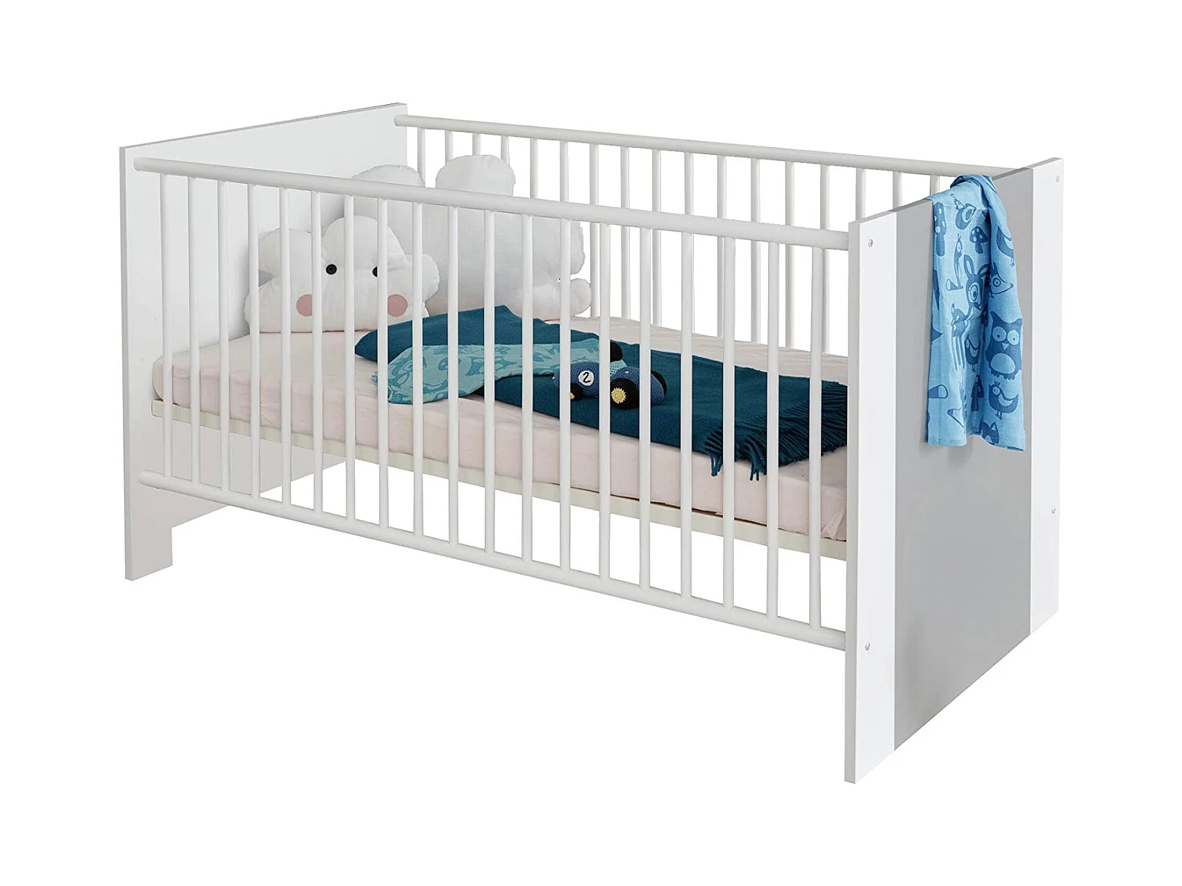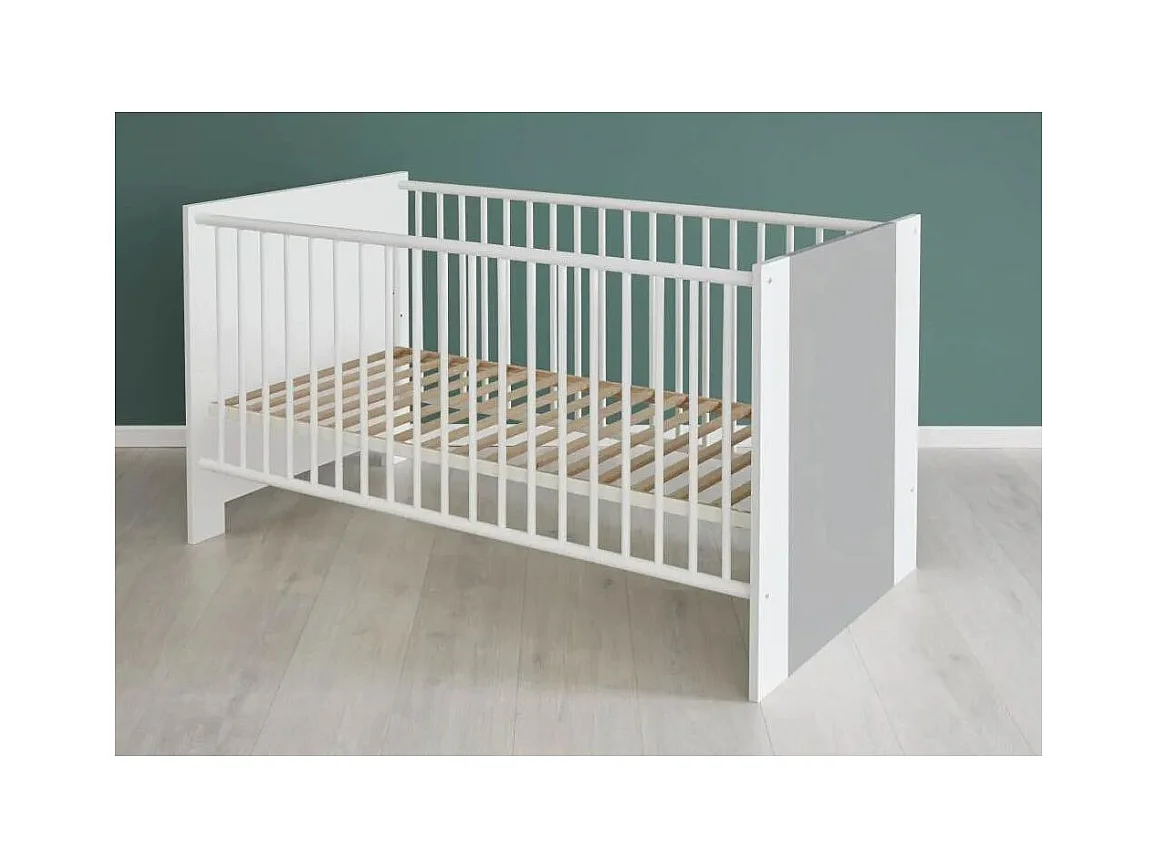 Lit à barreaux 70x140 mélaminé gris et blanc Evans