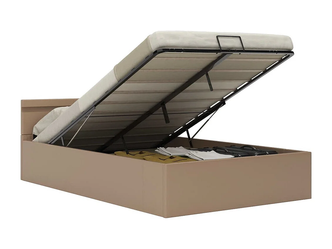 Lit à rangement et LED Cappuccino Similicuir 120x200