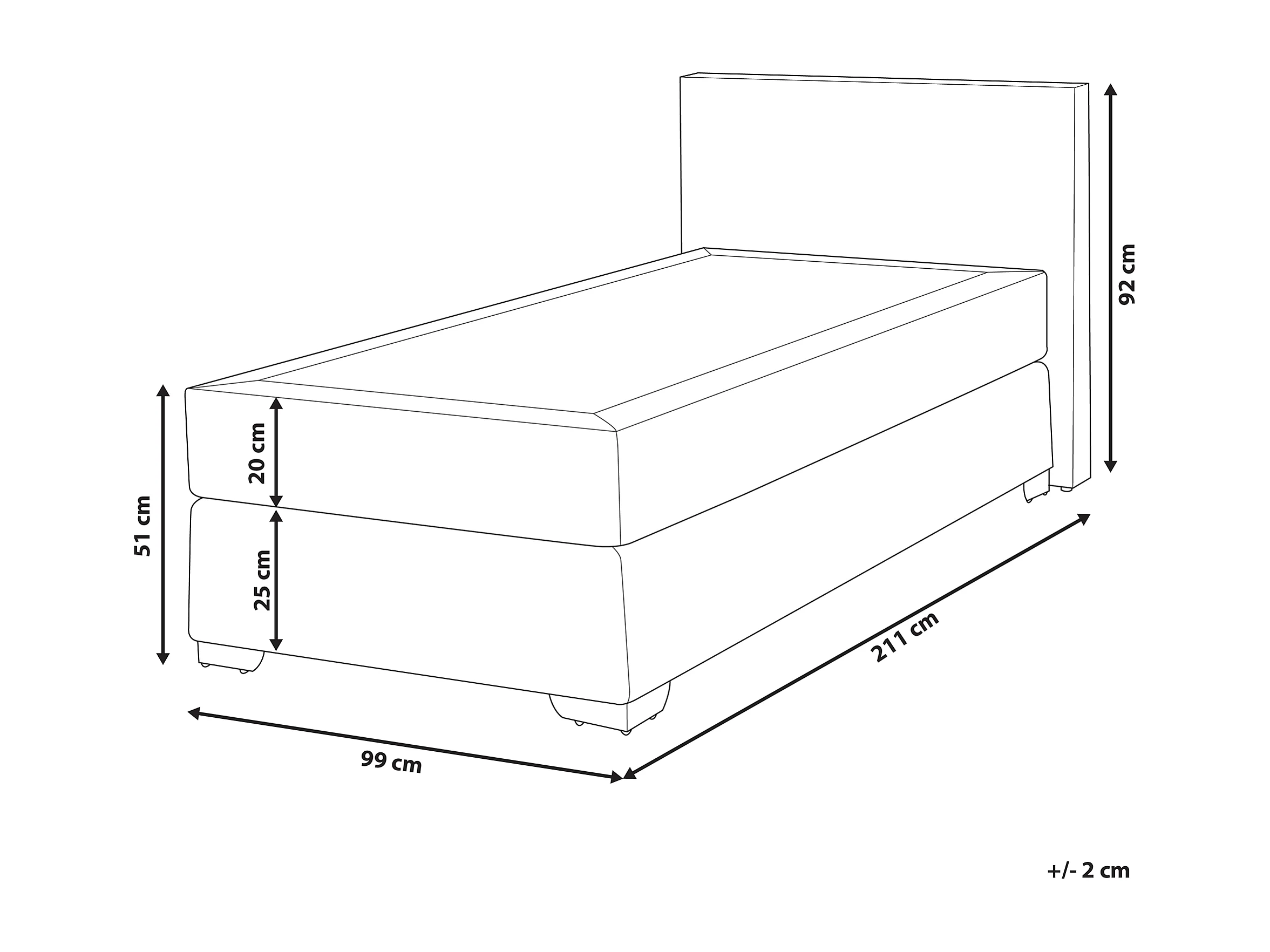 Lit Boxspring Cuir PU PRESIDENT 90 x 200 cm Blanc
