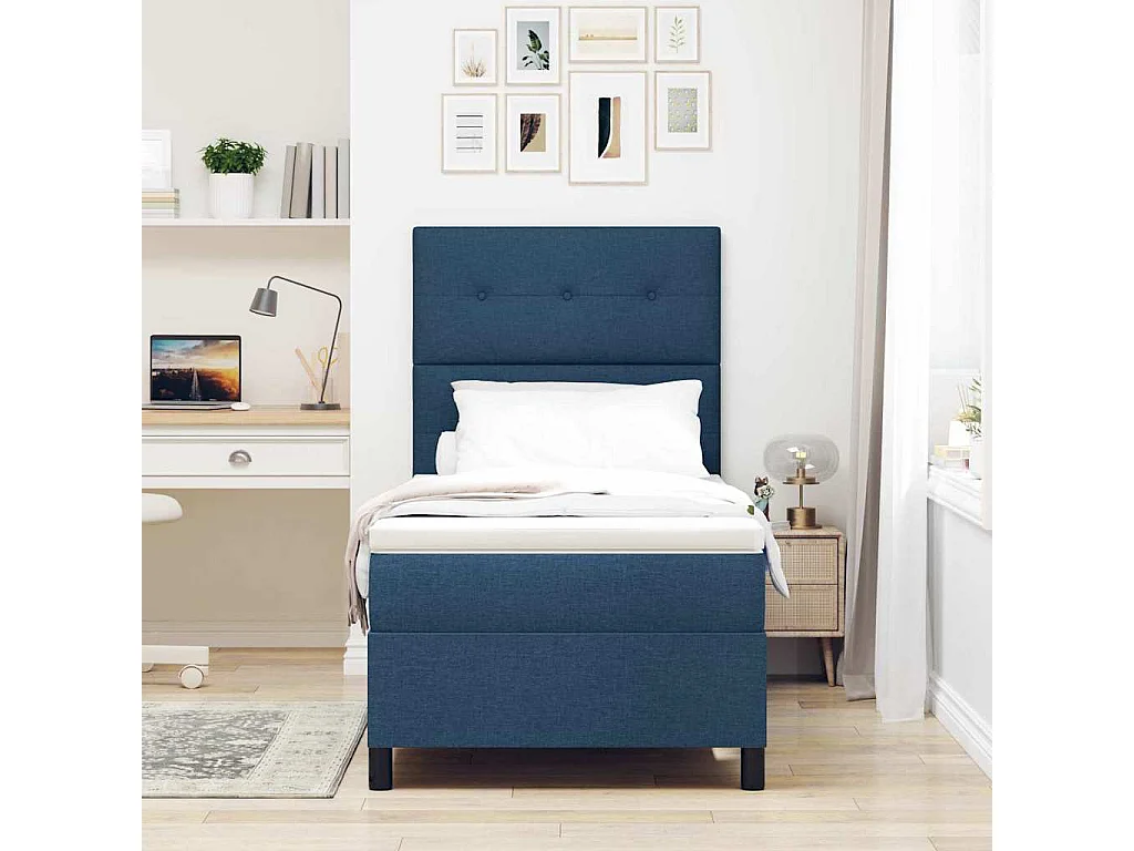 Lit à ressorts avec matelas Bleu 90 x 190 cm tissu