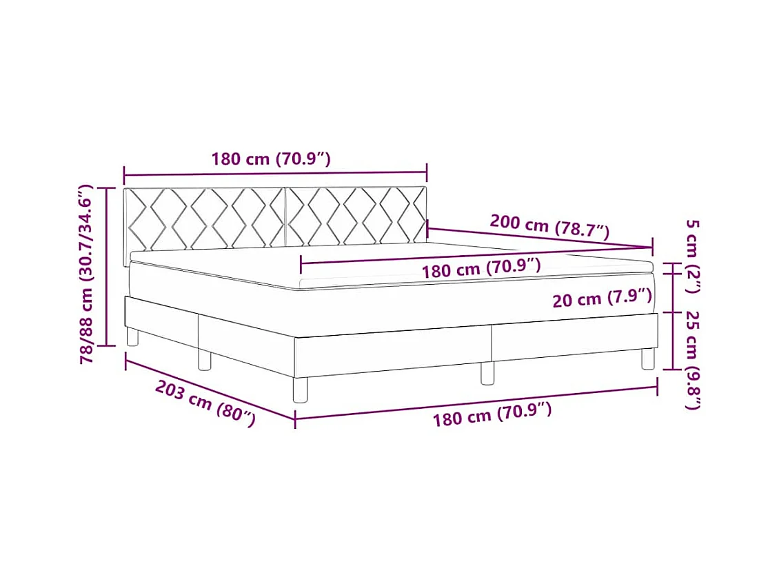 Lit à ressorts avec matelas Gris clair 180 x 200 cm tissu